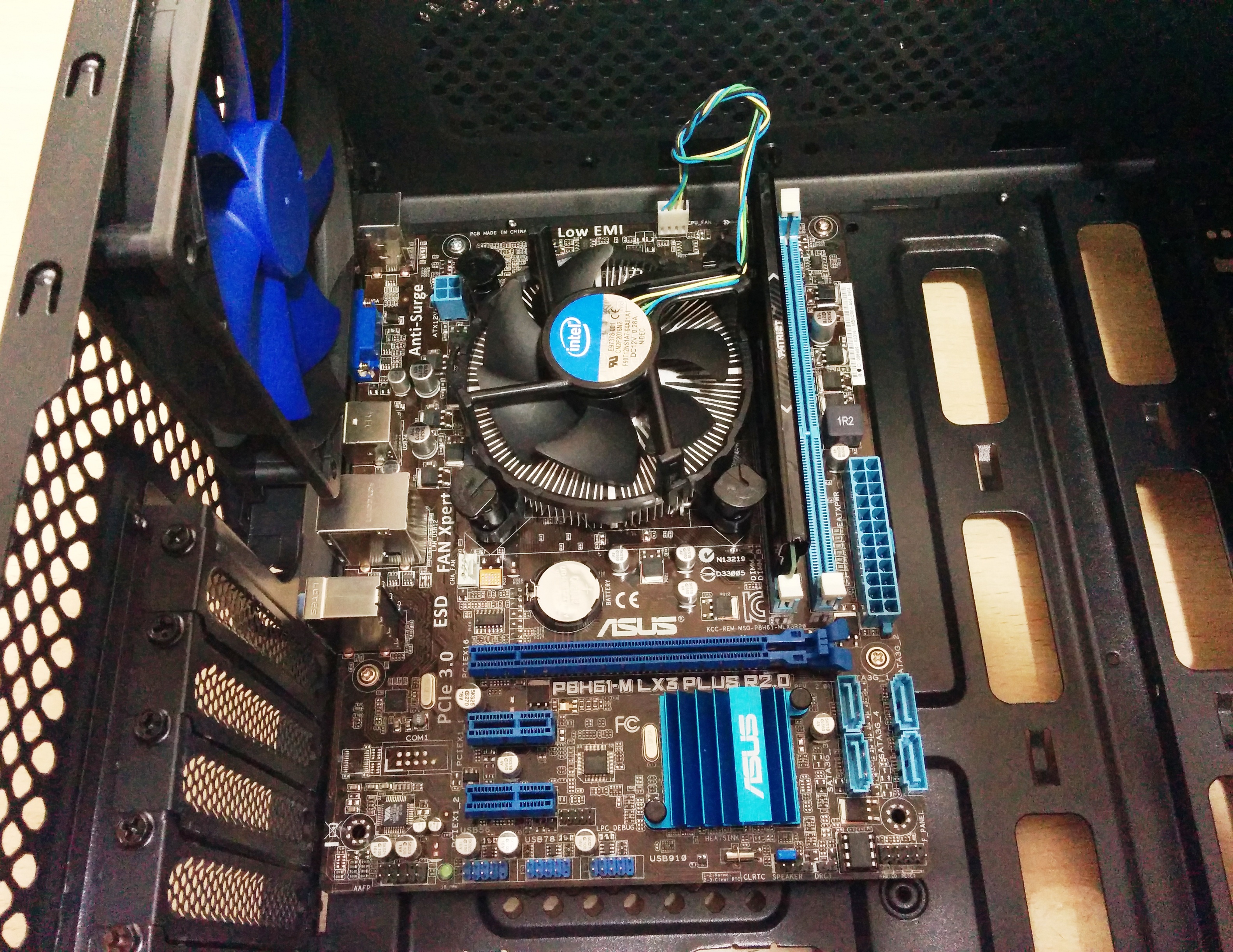 Después colocamos la placa base con el procesador, disipador y memoria RAM preinstalados:
