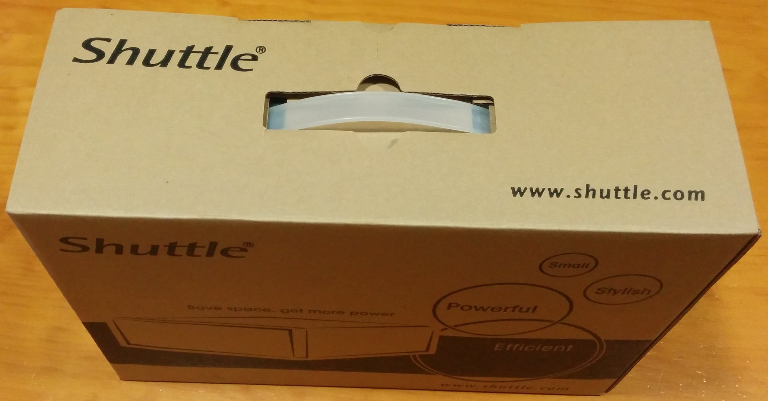 En la parte superior solo tiene el logo de Shuttle y su web www.shuttle.com.