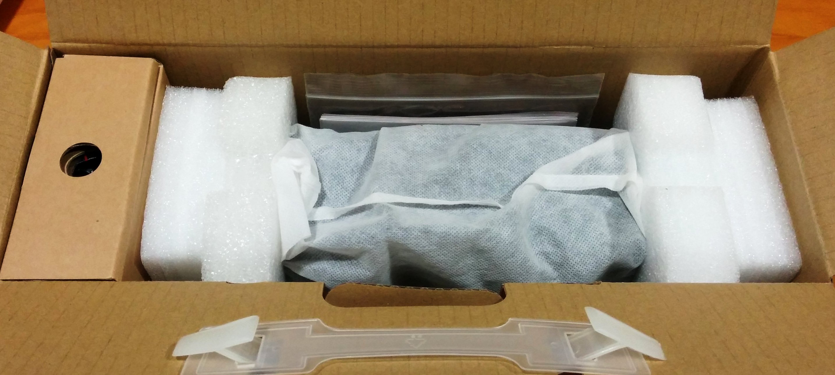 Una vez que abrimos la caja vemos como el PC compacto XH97V viene bien protegido contra golpes y arañazos gracias a las dos piezas de espuma y una bolsa de tela transpirable.