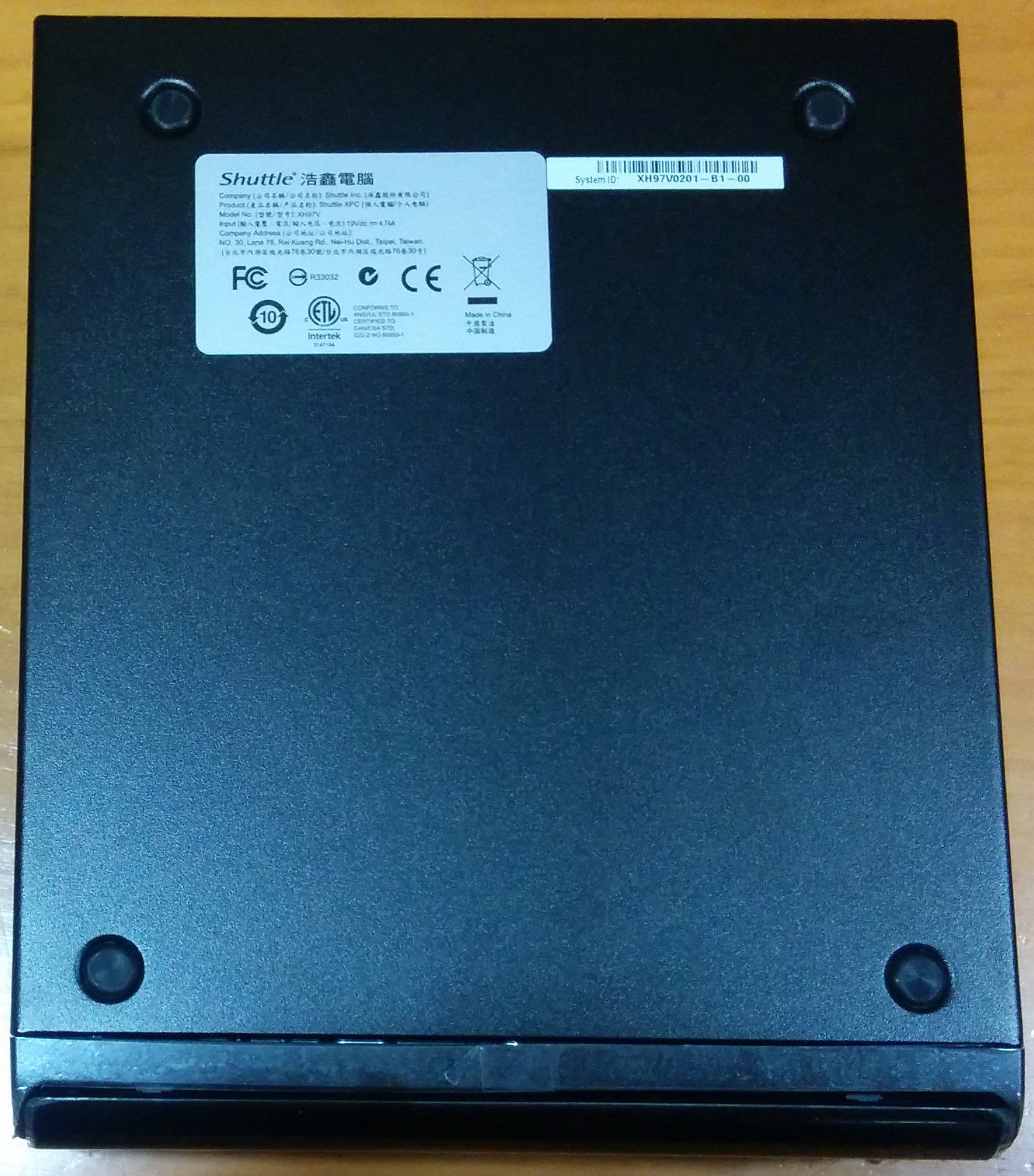 La zona inferior cuenta con cuatro patas de goma redondas para mantener aislado el chasis de la superficie donde se coloque (si se pone en horizontal), además de amortiguar las vibraciones al tratarse de piezas de goma. También posee un par de pegatinas que contienen el número de serie del XH97V y otros datos específicos del modelo.