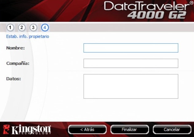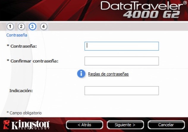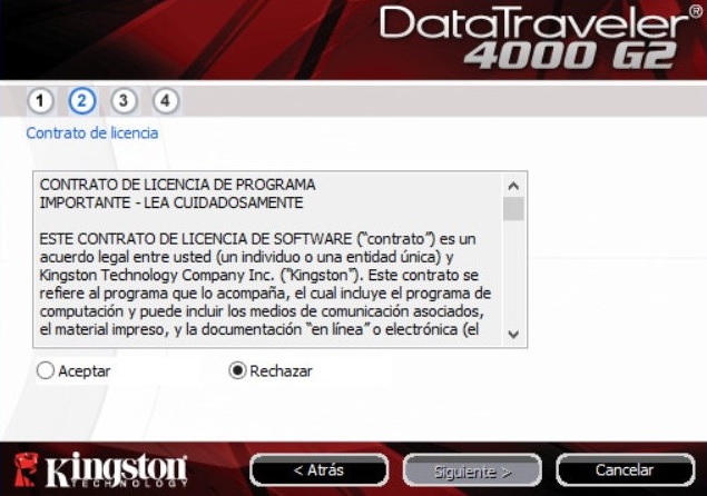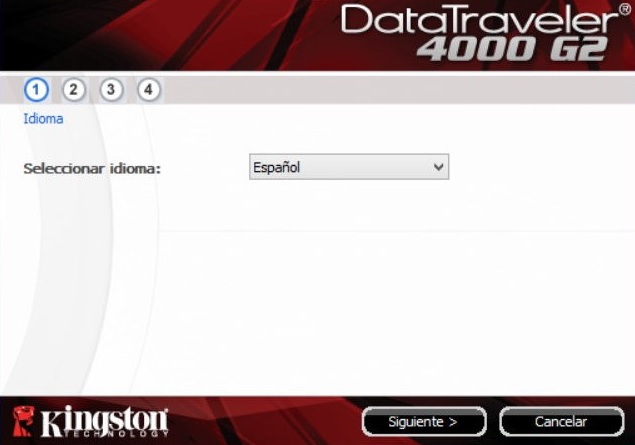 La primera vez que se conecta la unidad flash DataTraveler 4000 G2 al ordenador, se inicia una pequeña aplicación para instalar y configurar el pendrive. Los pasos son muy sencillos y en cuestión de segundos se realiza. Únicamente hay que seleccionar el idioma, después aceptar el contrato de licencia del programa, a continuación hay que añadir la contraseña con la que queremos proteger nuestra unidad y, por último, crear formato a la unidad.