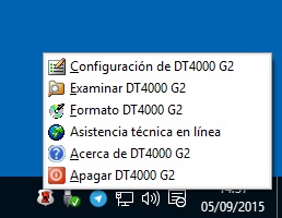 Al mismo tiempo, en la barra de herramientas se encuentra el software de seguridad ejecutado en el que nos ofrece algunas opciones, como la de volver a configurar la unidad, examinar su contenido, volver a darle formato, la asistencia técnica online, información de la unidad y la opción de desconectar el pendrive.