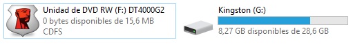 Si la contraseña la hemos puesto correctamente, nos creará dos unidades en nuestro sistema, una de 15,6MB que contiene el software de seguridad, y otra de 28,6GB de espacio de almacenamiento.