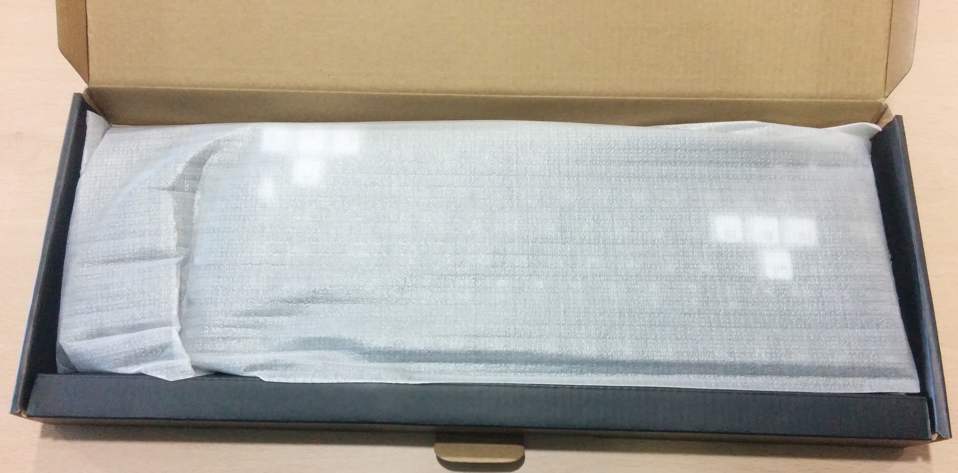 Al abrir la caja por primera vez, vemos como el teclado se encuentra bien protegido dentro de una bolsa de poréxpan, que junto con la caja de cartón, evita sufrir daños y arañazos hasta que le llega a las manos del usuario final.