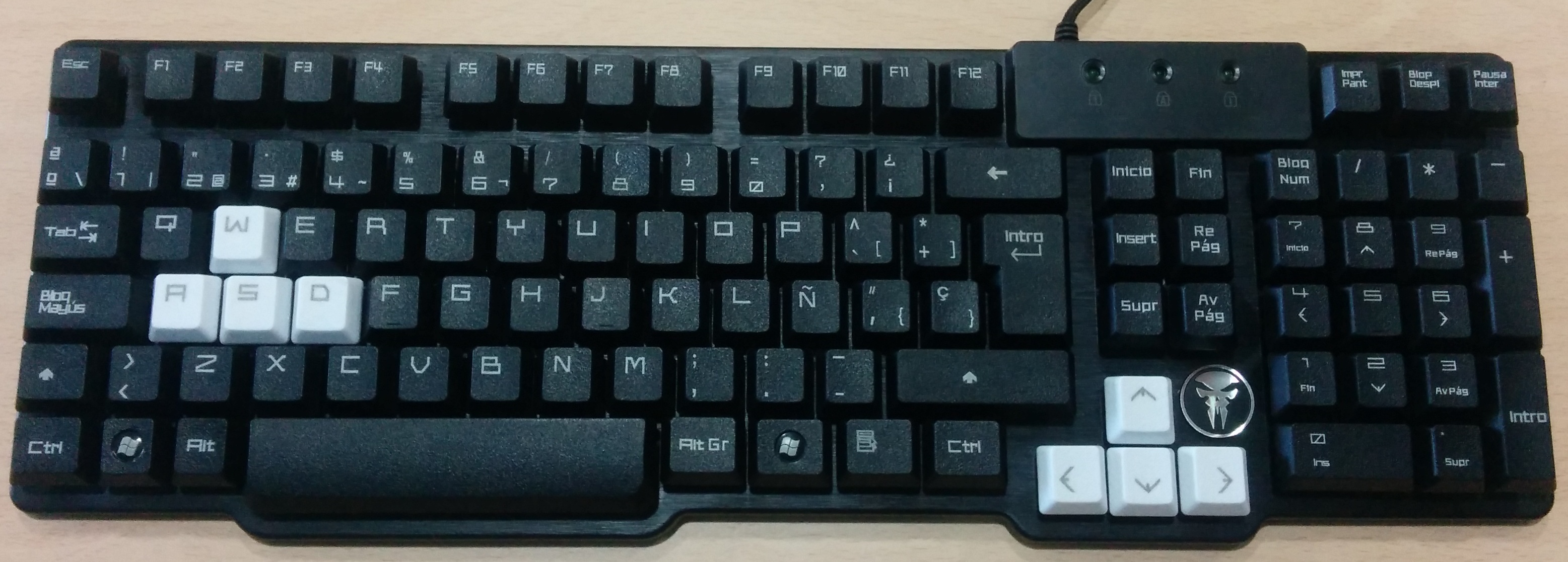 En los dos laterales se nombra al fabricante Tacens y que se trata de un teclado con diseño de teclas en español.