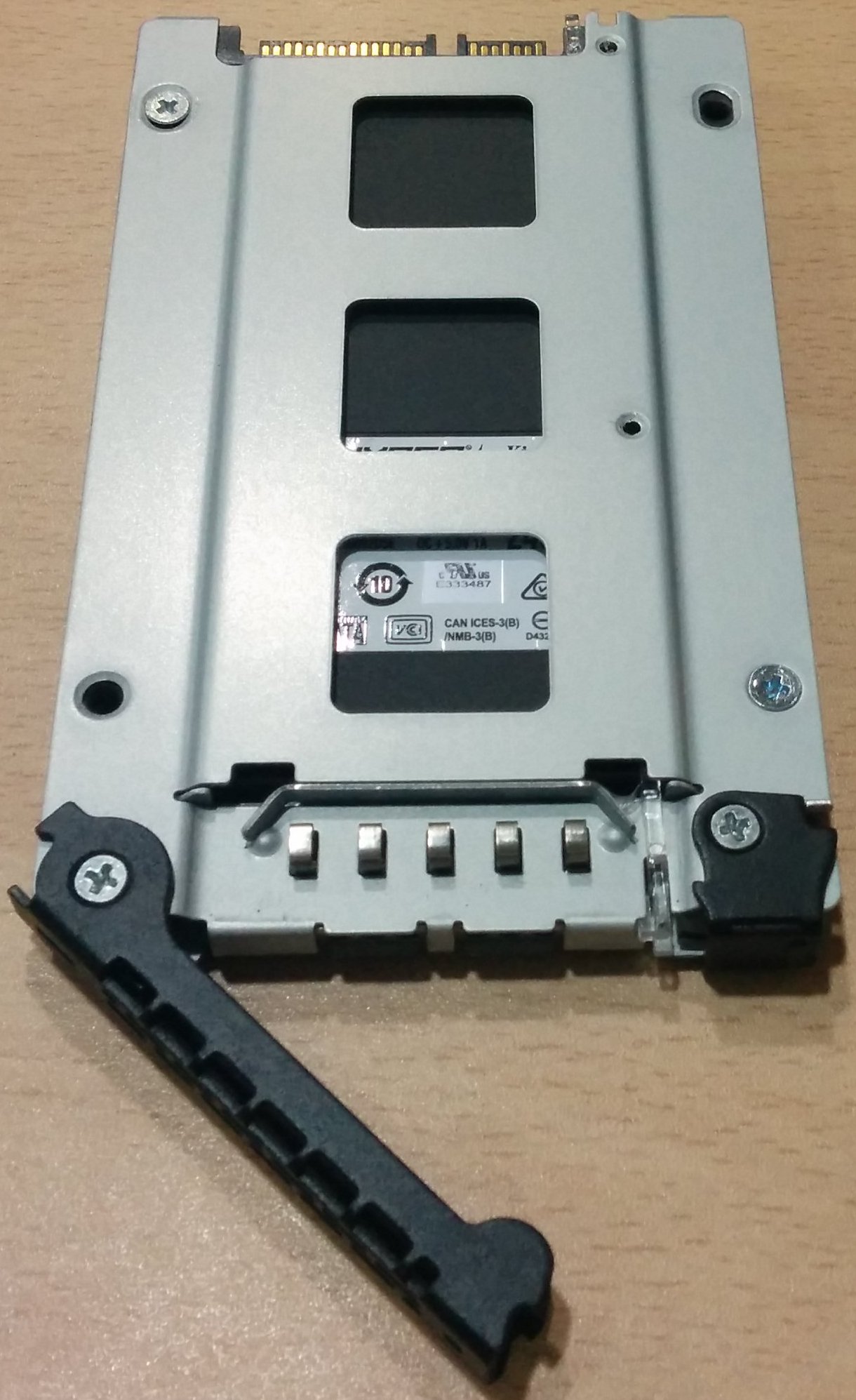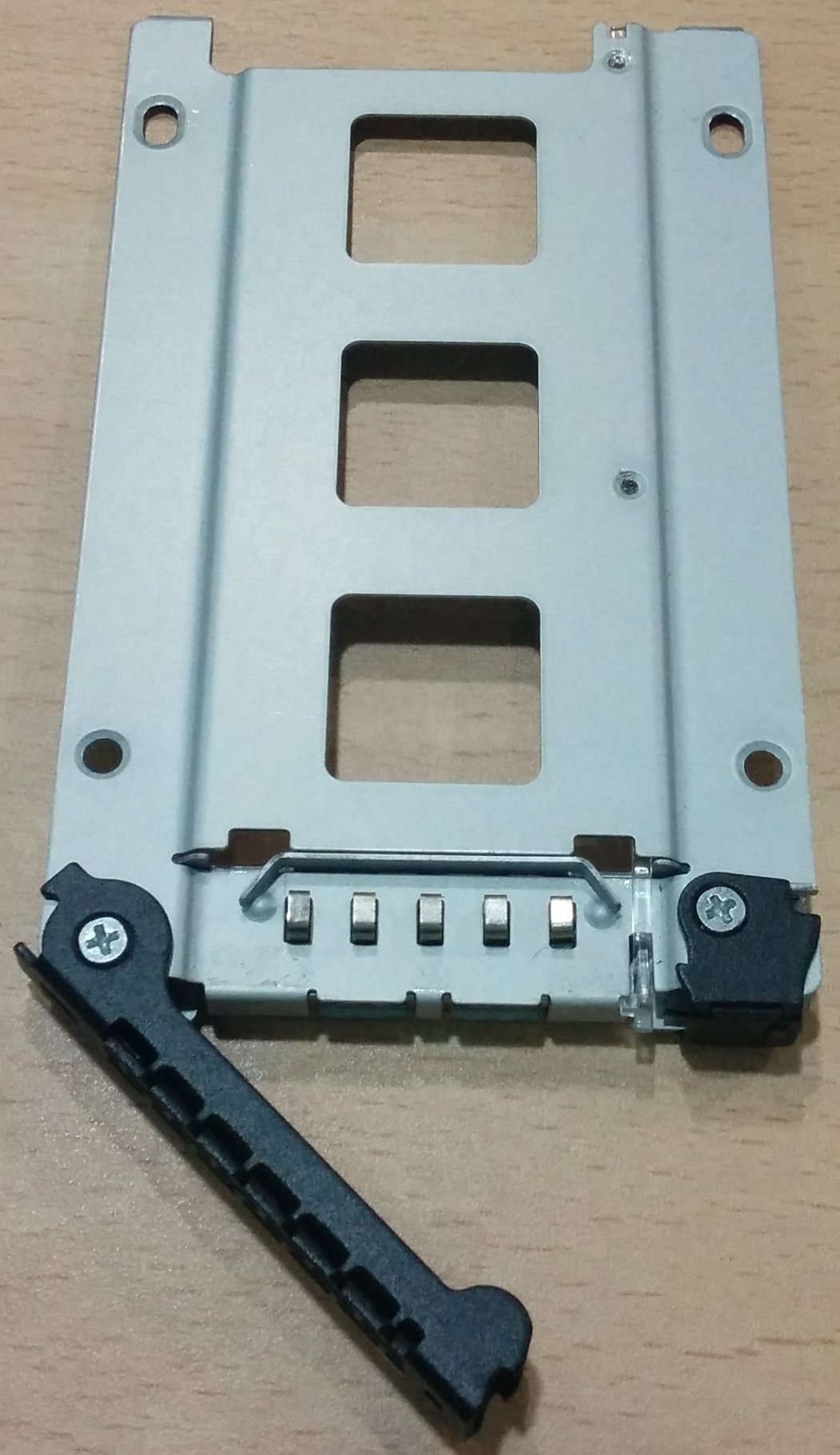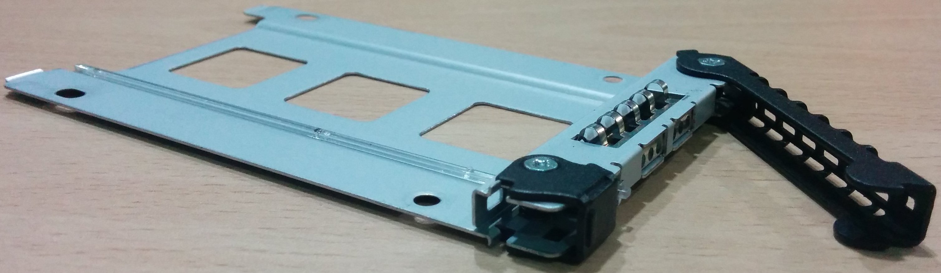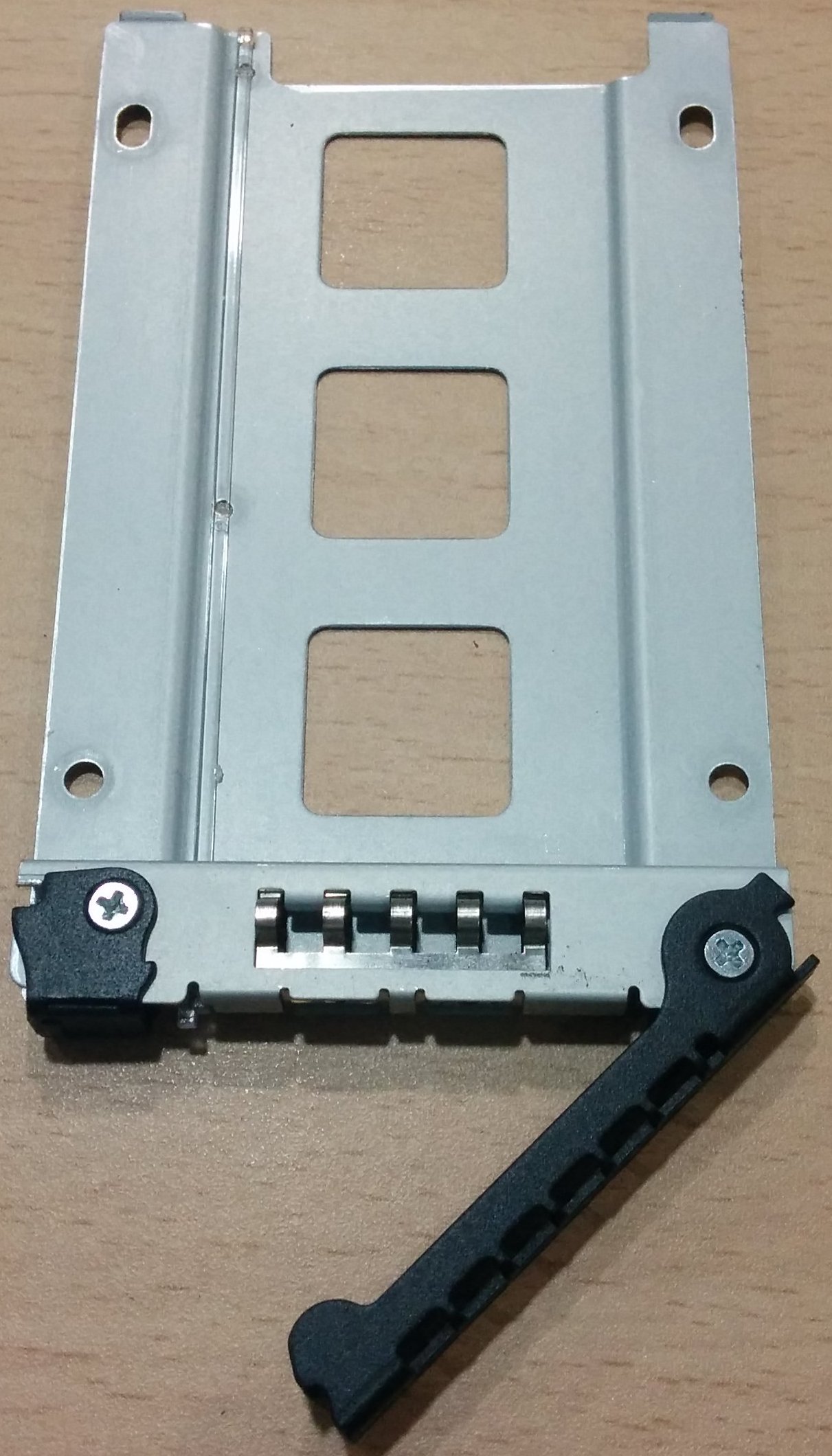 A continuación podéis ver cómo quedaría instalado el SSD en una de las bandejas. Para ello, tal y como hemos comentado, únicamente hay que poner los 4 tornillos por la parte de abajo.