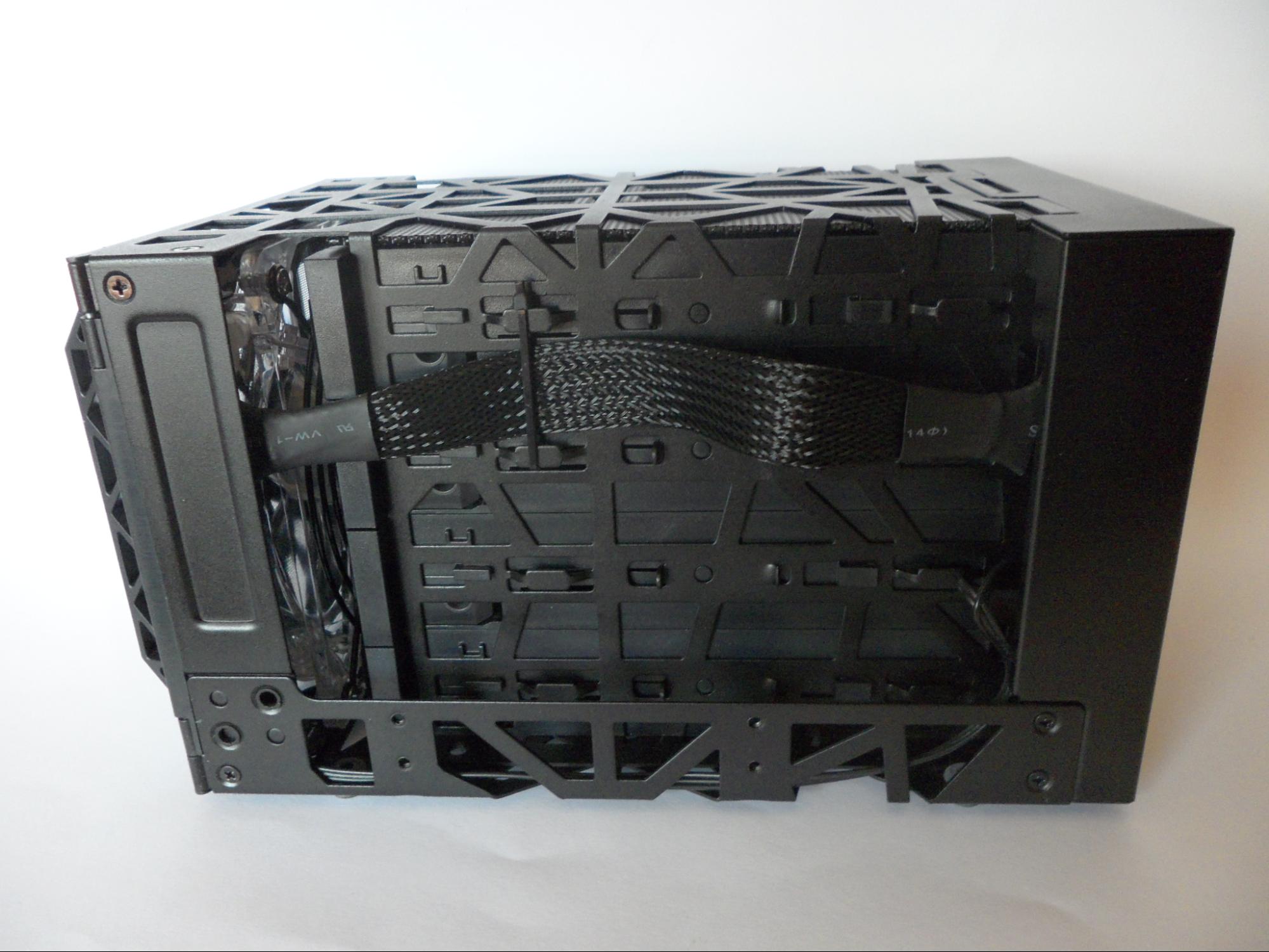 Las partes laterales no tienen ningún misterio, son de puro metal con troquelados modernos, a destacar el cable de datos que viaja por uno de estos laterales, manteniéndolo así protegido del calor que desprenden los discos duros.