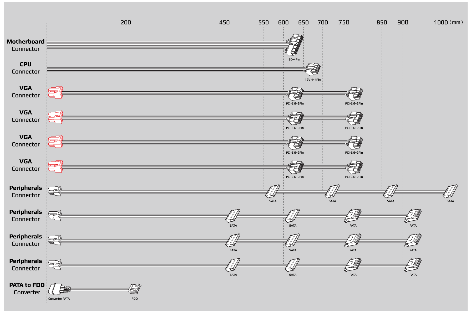 - Longitud del cable 20+4p y 4+4p de CPU de hasta 600mm: Fácil alcance a todos los componentes