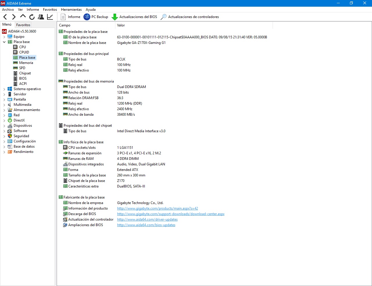 A continuación mostramos la información que brinda Aida64 en la sección de la placa base: