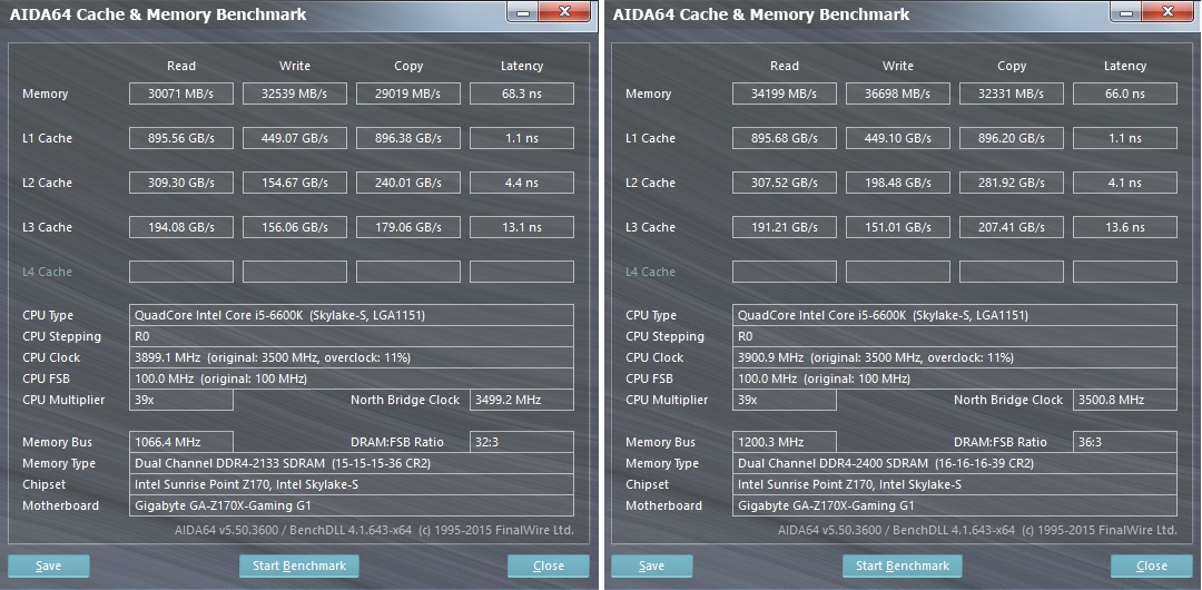 Aida64 Extreme Edition – 2133MHz / 2400MHz