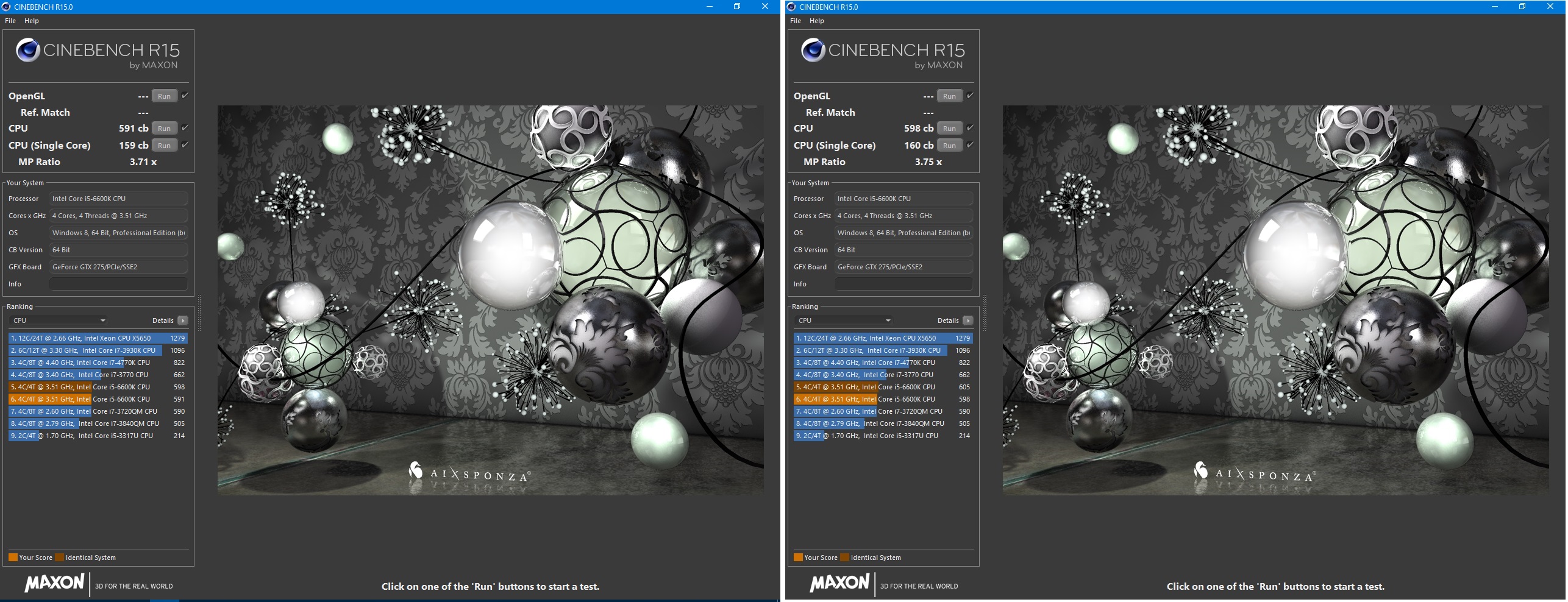 CineBench R15 – 2133MHz / 2400MHz
