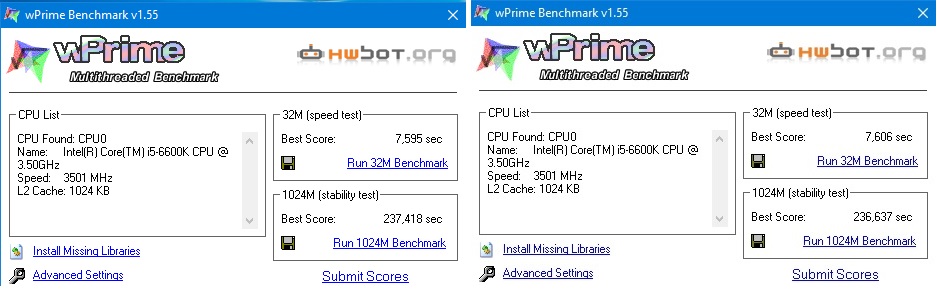 wPrime v1.55 – 2133MHz / 2400MHz