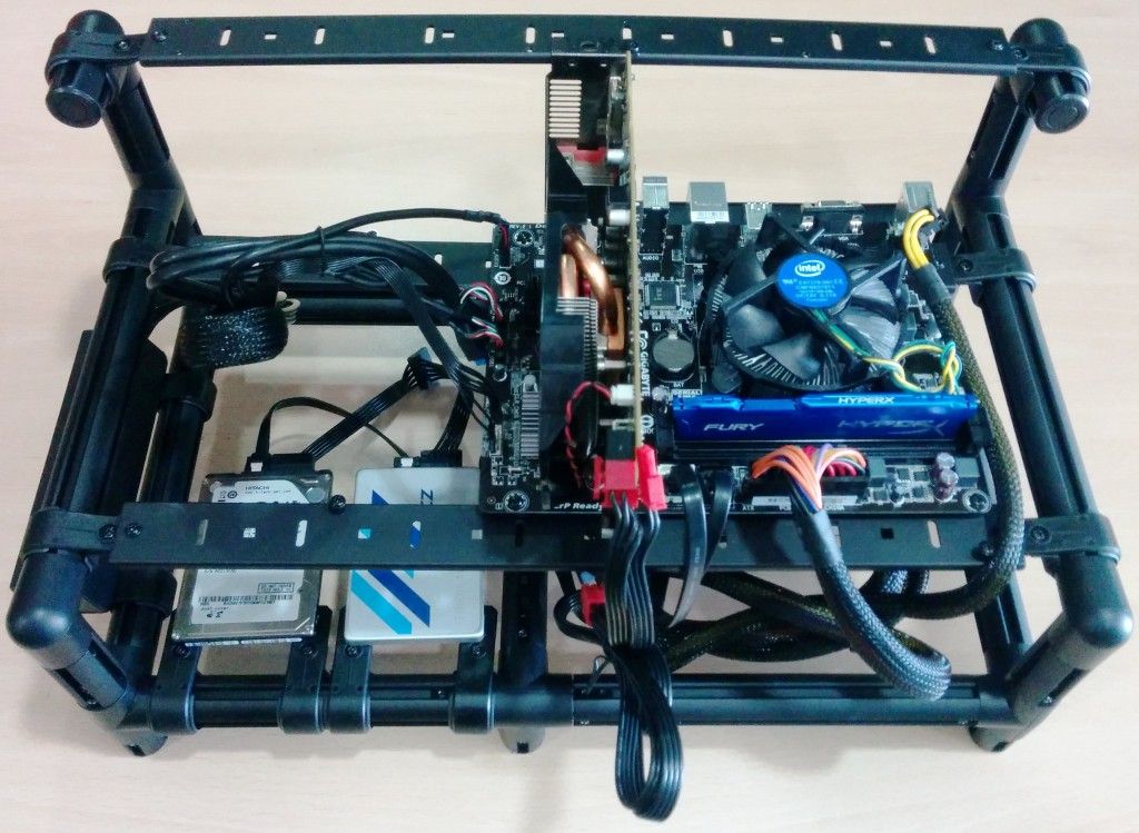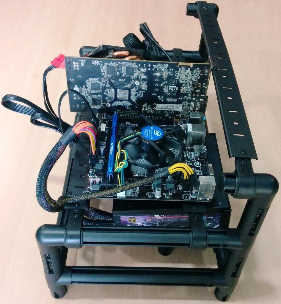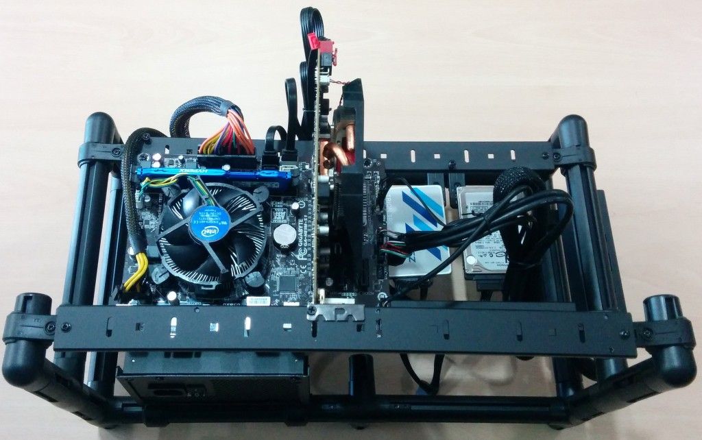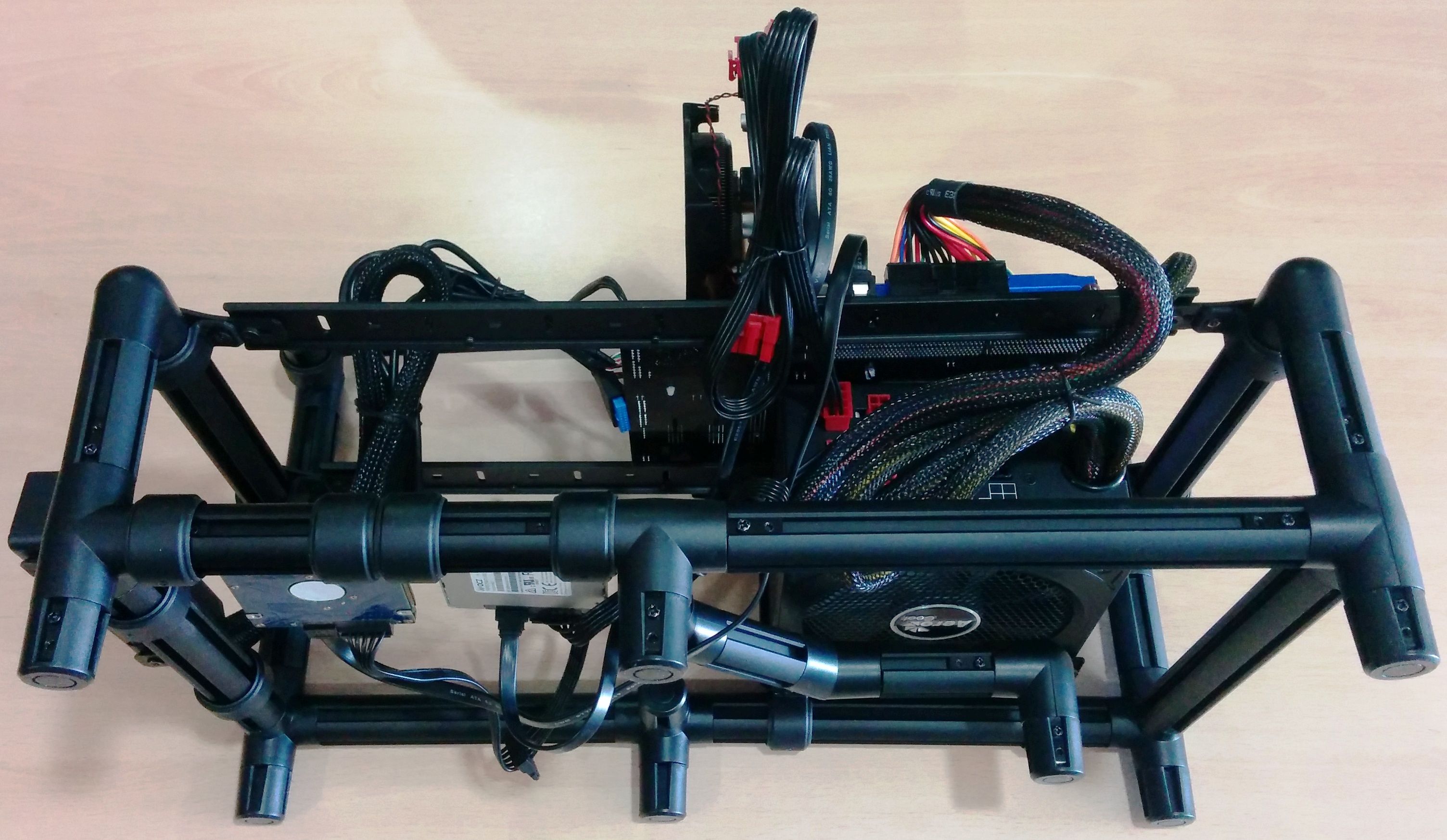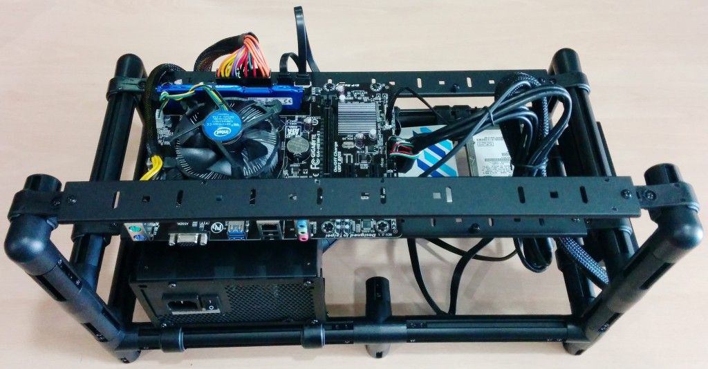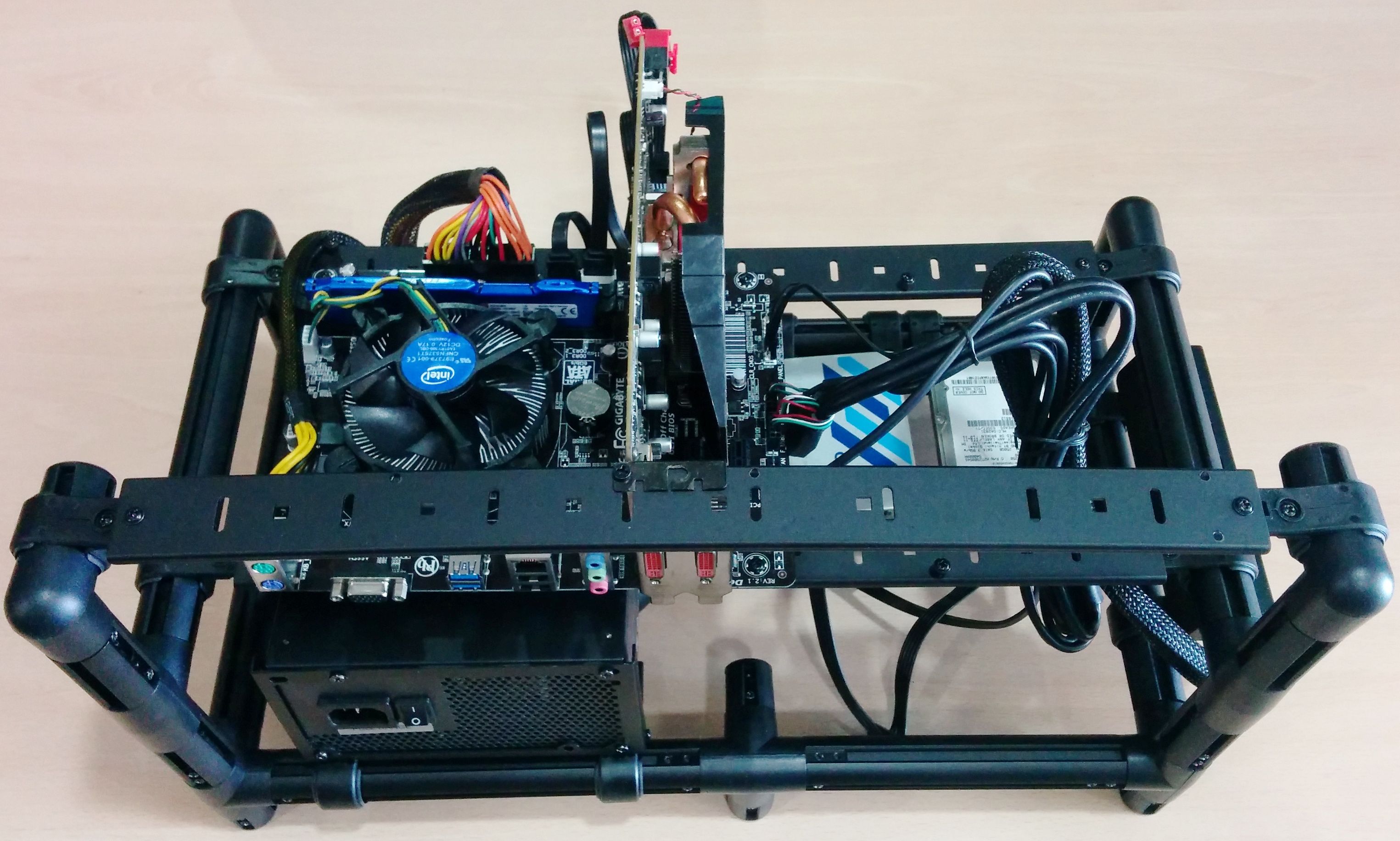 Después. si os fijáis en las fotos, hay una tercera barra de metal de 200mm a una tercera altura, pero esta sólo la hemos empleado para la sujeción de las tarjetas de expansión del sistema, como puede ser una tarjeta gráfica u otra.