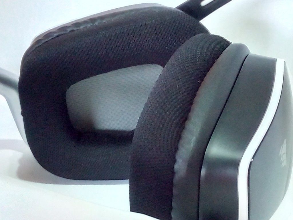 Las orejeras tienen ángulos de flexión en vertical y también en horizontal, consiguiendo así una perfecta adhesión a la cabeza. Por dentro es de un material de microfibra que reviste la espuma acolchada, y en el centro nos encontramos con una delgada tela micro perforada en color gris que protege el controlador de 50mm que hace que suenen estos VOID RGB Wireless de Corsair.