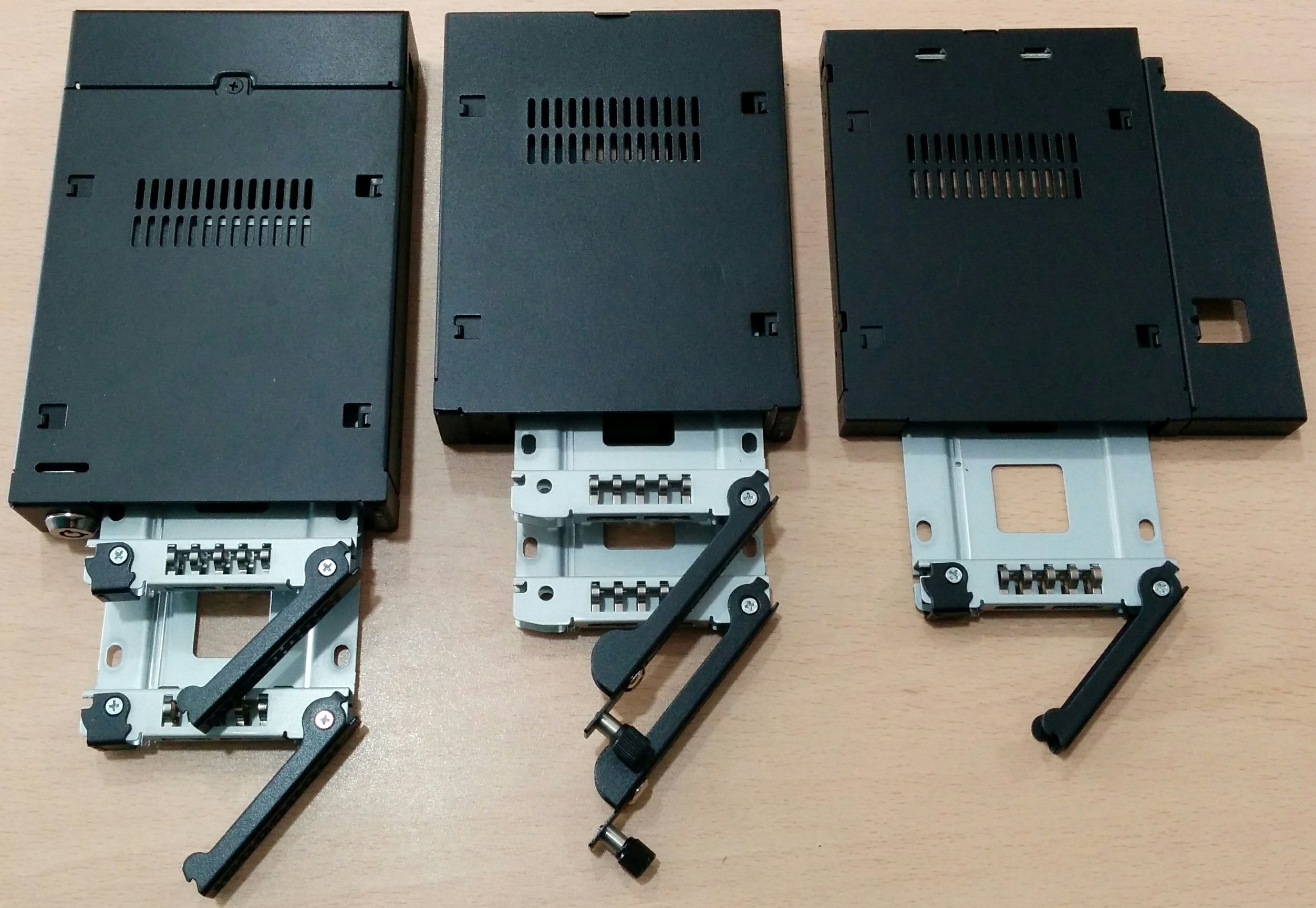 Cada bahía dispone de un botón que permite la extracción en caliente de la unidad de almacenamiento, también de unas rejillas para mejorar el flujo de aire y así su refrigeración, un led indicador de actividad de la unidad de almacenamiento, y en la MB992SKR-B una cerradura para bloquear las unidades con llaves; así como un pequeño botón para reconstruir las configuraciones RAID; en la MB492SKL-B dos roscas de seguridad y dos cerraduras para bloqueo de las dos unidades de almacenamiento, así como una etiqueta identificadora para reconocer el HDD o SSD que contiene esa bahía; y en la MB411SPO-B nada diferente.