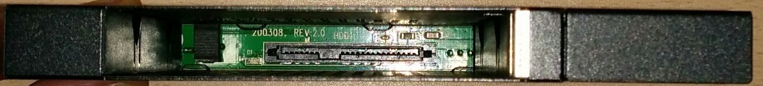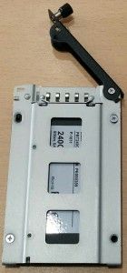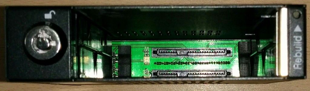 Cada bahía de las ToughArmor contiene una fina bandeja metálica para instalar la unidad de almacenamiento, que para ello únicamente hay que atornillar cuatro tornillos (que se incluyen en la ToughArmor). Y por un extremo tiene un fino y alargado cristal que es el que lleva la luz del led indicativo de actividad de la unidad.
