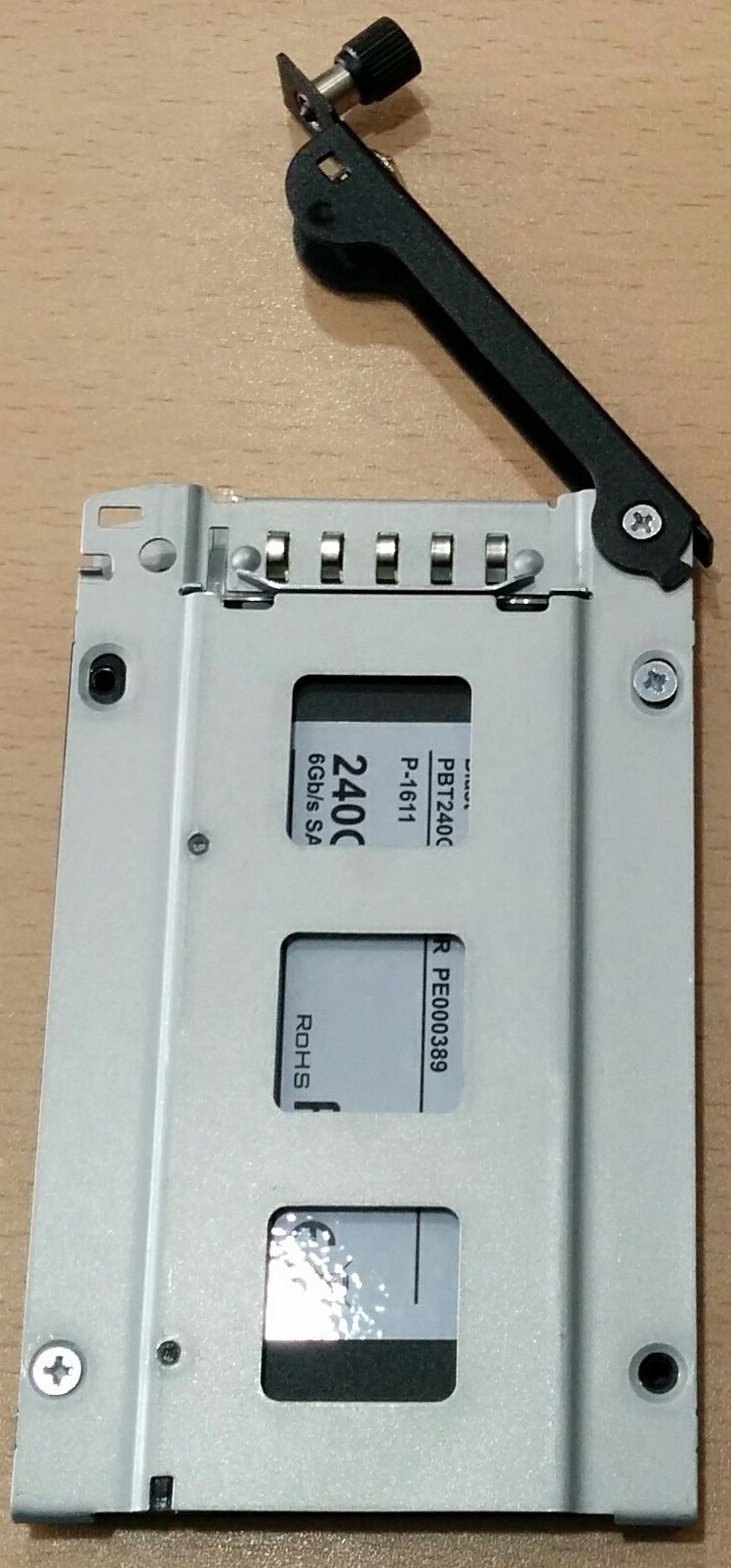 A continuación podéis ver cómo quedaría instalado el SSD en una de las bandejas. Para ello, tal y como hemos comentado, únicamente hay que poner los 4 tornillos por la parte de abajo.