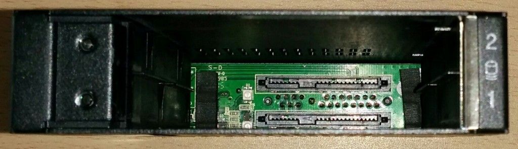 En las partes traseras podemos ver las conexiones de cada una de las ToughArmor. En la MB992SKR-B sólo tiene un conector SATA de alimentación y otros de datos, aún cuando son dos unidades de almacenamiento las que soporta simultáneamente, y un interruptor de 4 posiciones para la configuración de las dos unidades, ya sea en RAID 0, RAID 1, JBOD o BIG. En la MB492SKL-B hay un conector SATA de alimentación y dos de datos. Mientras que en la MB411SPO-B hay un conector SATA de datos y un conector de alimentación FDD de 4 pines que viene muy bien para aprovechar ese conector casi inutilizable de las fuentes de alimentación y preservar uno libre de alimentación SATA.