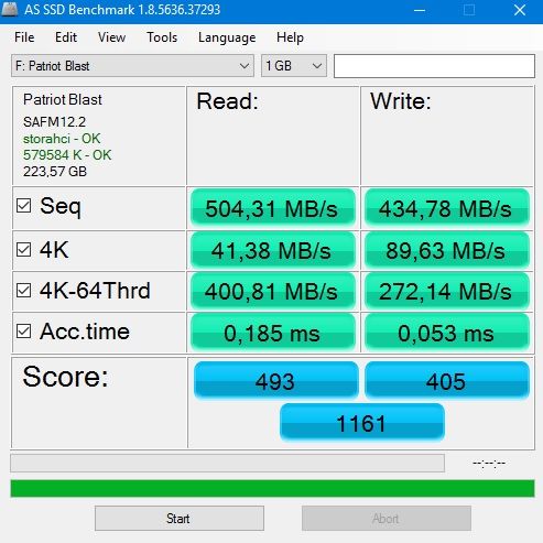 A continuación mostramos los resultados del benchmark de las aplicaciones AS SSD Benchmark 1.8 y de CrystalDiskMark 5 utilizando el SSD Patriot Blast de 240GB con las ToughArmor MB992SKR-B, MB492SKL-B y MB411SPO-B de ICY Dock.