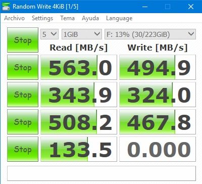 De entrada los resultados son bastante buenos, ya que son resultados parecidos a los valores de referencia que proporciona el propio fabricante Patriot sobre su unidad de almacenamiento Blast de 240GB, sin embargo, lo que pretendemos demostrar es la diferencia de rendimiento entre una unidad de almacenamiento conectada en las ToughArmor y directo en la placa base, por lo que a continuación se muestran los resultados de la unidad conectada directamente a la placa base.