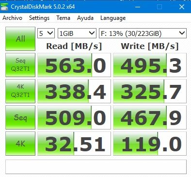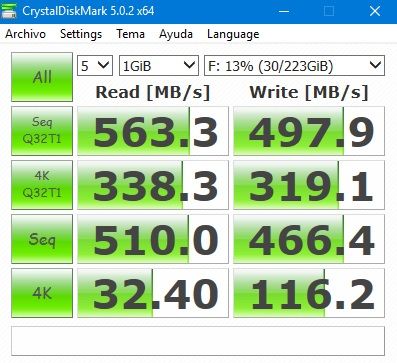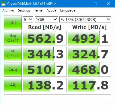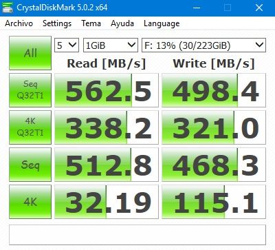 Como podéis comprobar, la puntuación en AS SSD es un poco mayor que con las ToughArmor, pero es mínima. Los resultados de lectura son un poco mejores, pero en la escritura son un poco peores, pero en ambos casos son diferencias mínimas. Y lo mismo sucede con CrystalDiskMark, pero en este caso los resultados de lectura son inferiores cuando el SSD va directo a la placa base, y los de escritura son mejores. No obstante, también son diferencias mínimas que son inapreciables en el uso de la unidad SSD.