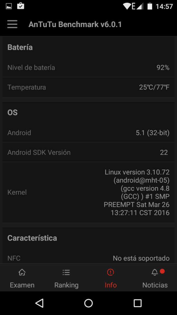 El rendimiento global es bastante decente teniendo en cuenta el precio que tiene, y en las fotos de abajo se puede ver un rendimiento completo a través de la herramienta AnTuTu.