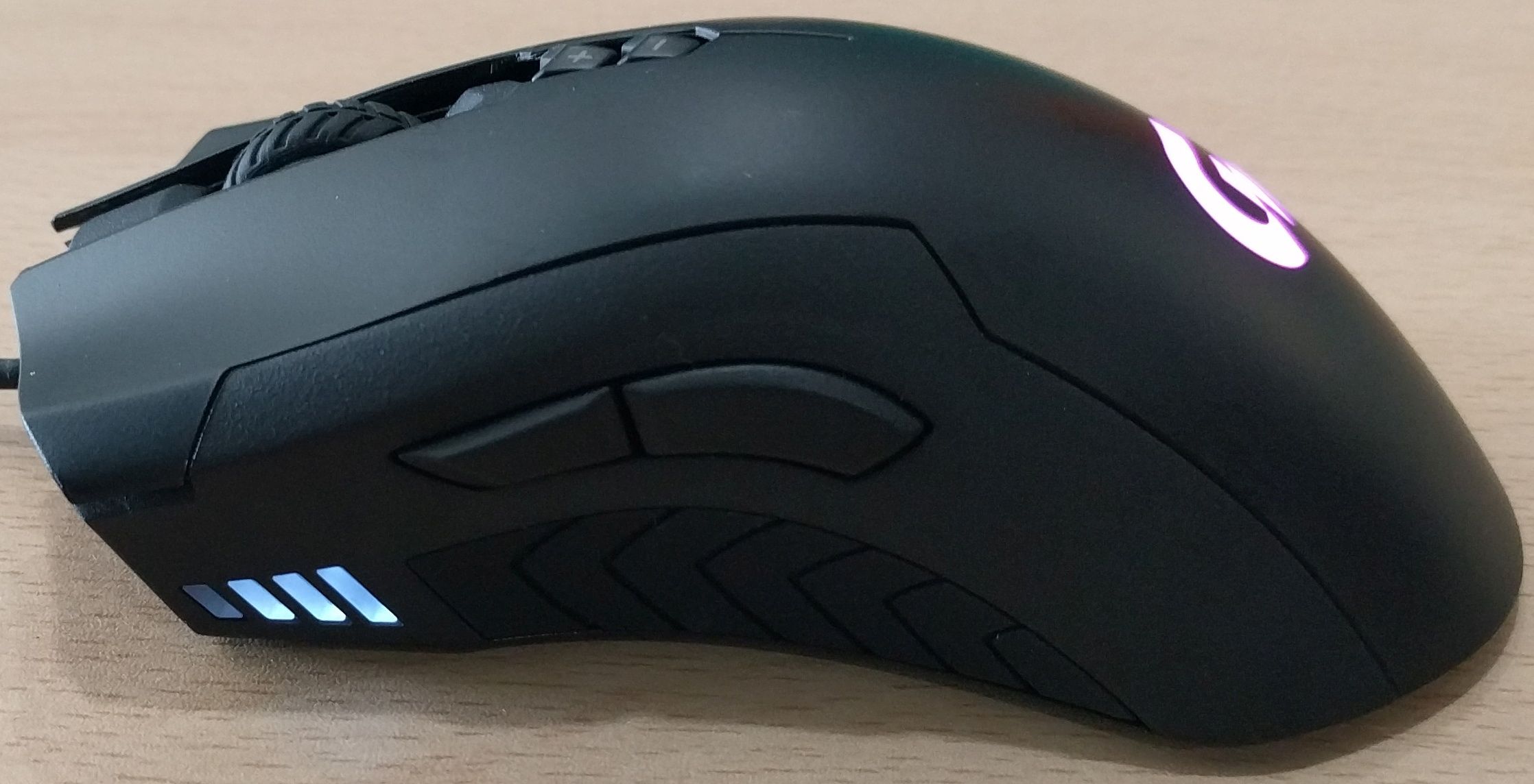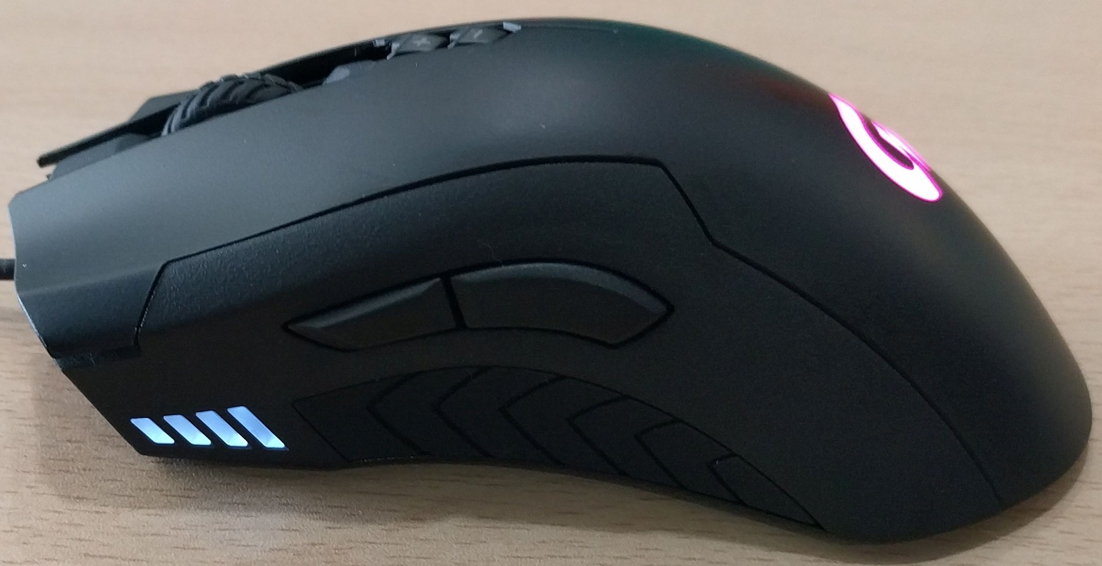 Y ahora unas cuentas imágenes, tanto con luz como sin luz, para que se pueda apreciar el logo Gigabyte iluminado en varios colores, así como los LEDs indicativos de la sensibilidad DPI.
