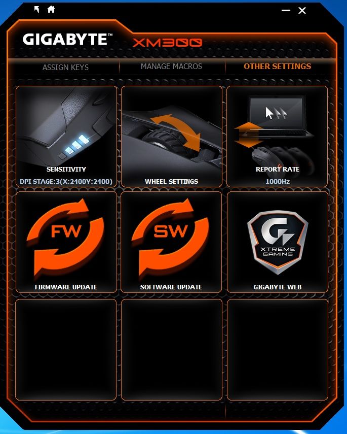 Mientras que en la tercera pestaña existen otras opciones adicionales, como la sensibilidad, la configuración del scroll, información de los Hz, actualización del firmware, del software y una para acceder a la web de Gigabyte.