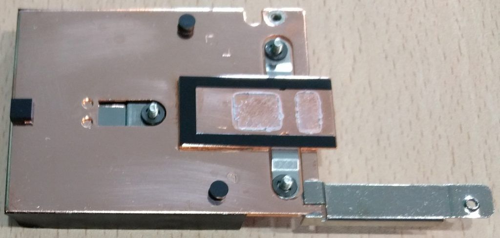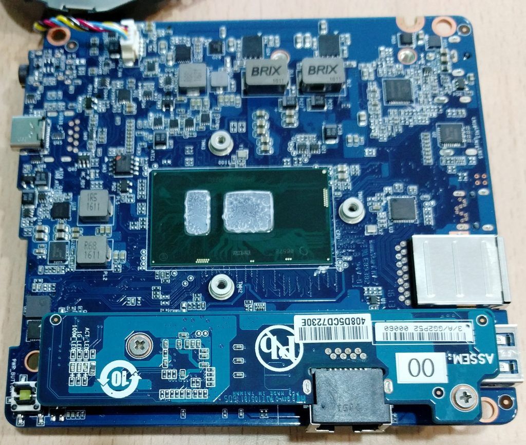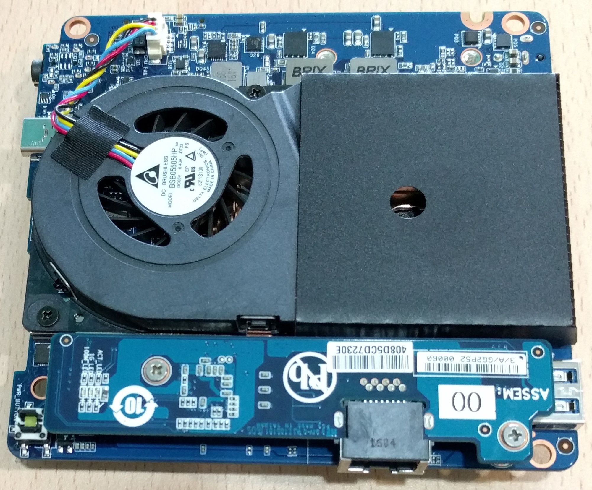 Y si quitamos los dos tornillos que mantienen sujeta la PCB, podremos extraerla y ver su lado opuesto, donde veremos un ventilador con su disipador para mantener frío el chip que hay en su interior, que en concreto es el Intel Core i3-6100U, el cual trabaja hasta los 2.3GHz en cada uno de sus dos núcleos y que está construido sobre un proceso de 14nm. Al mismo tiempo podéis ver el disipador con base de cobre para mantener el procesador lo más frío posible.