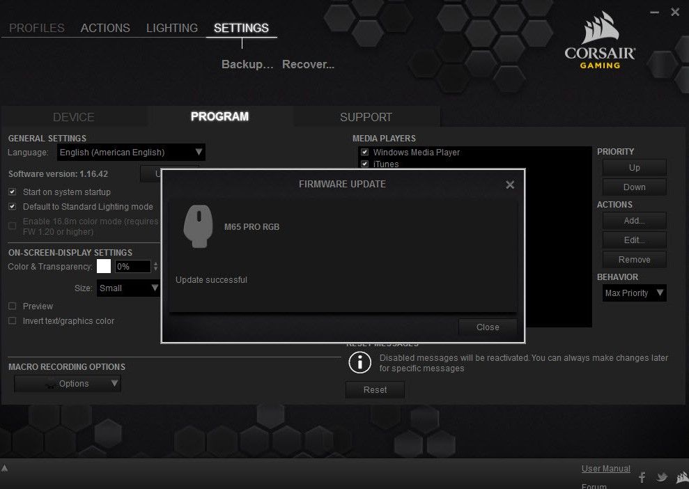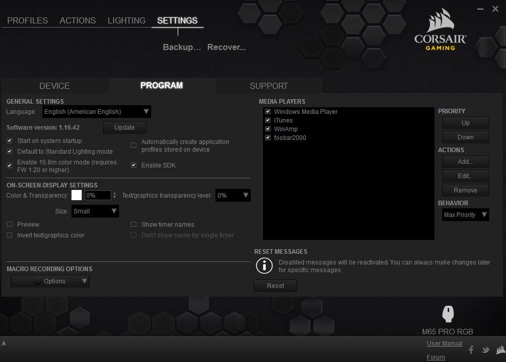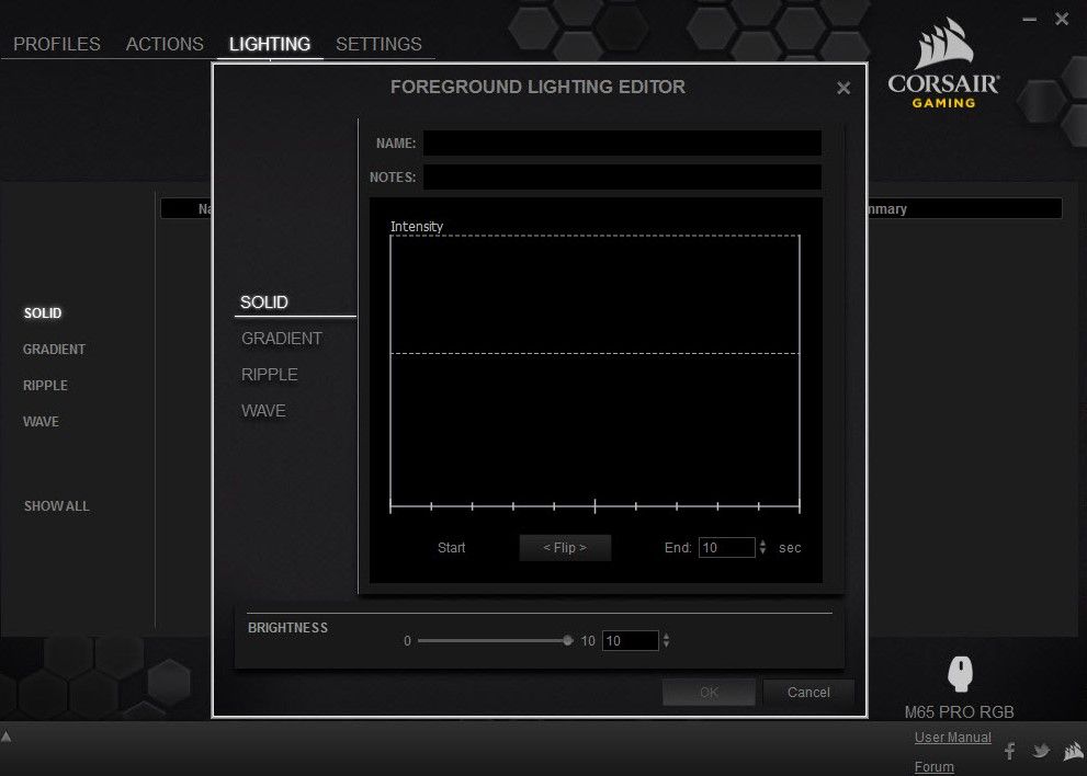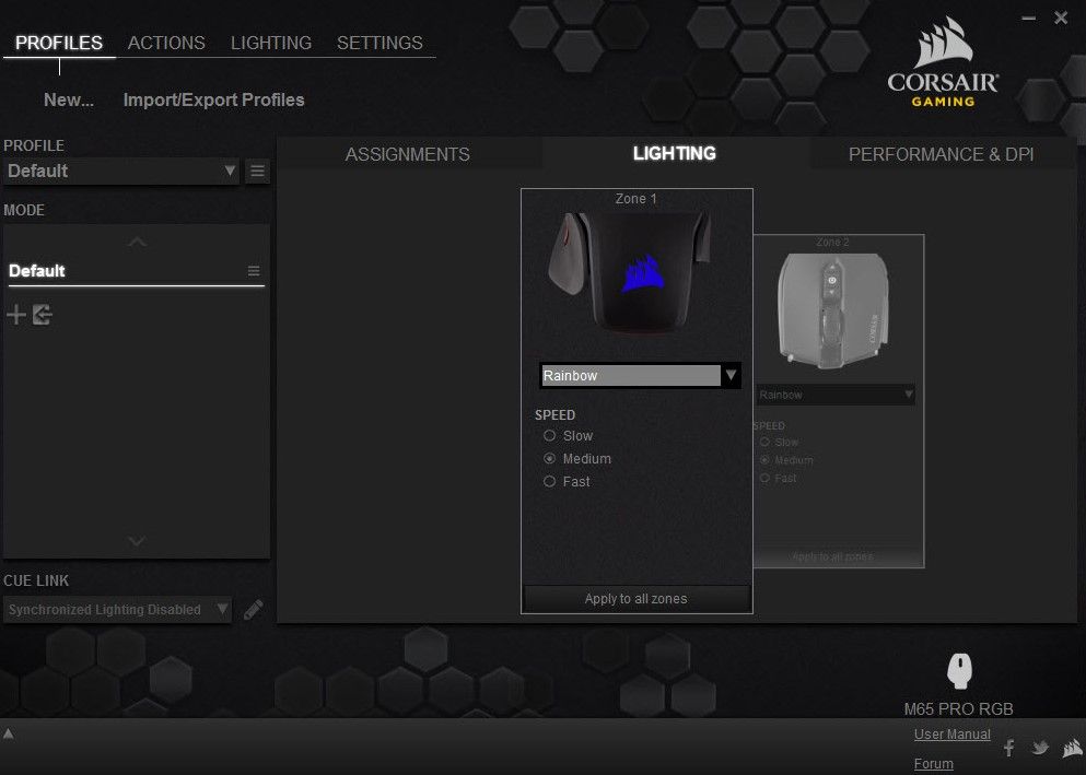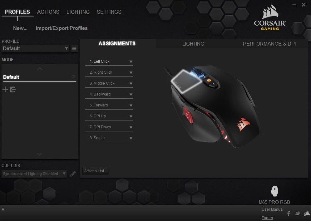 Desde las pantallas principales de la utilidad puede programar los 8 botones disponibles (asignar acciones), cambiar el color de iluminación y efectos para 2 de las 3 zonas, configurar el DPI (ambos ejes) de los 5 modos disponibles y habilitar y bloquear ángulo y precisión del puntero. El programa también permite al usuario final crear varias acciones como macros y las pulsaciones de teclado que más tarde puede asignar en los botones. También puedes crear tus propios efectos de iluminación, aunque esta es una característica que no hemos probado en profundidad.