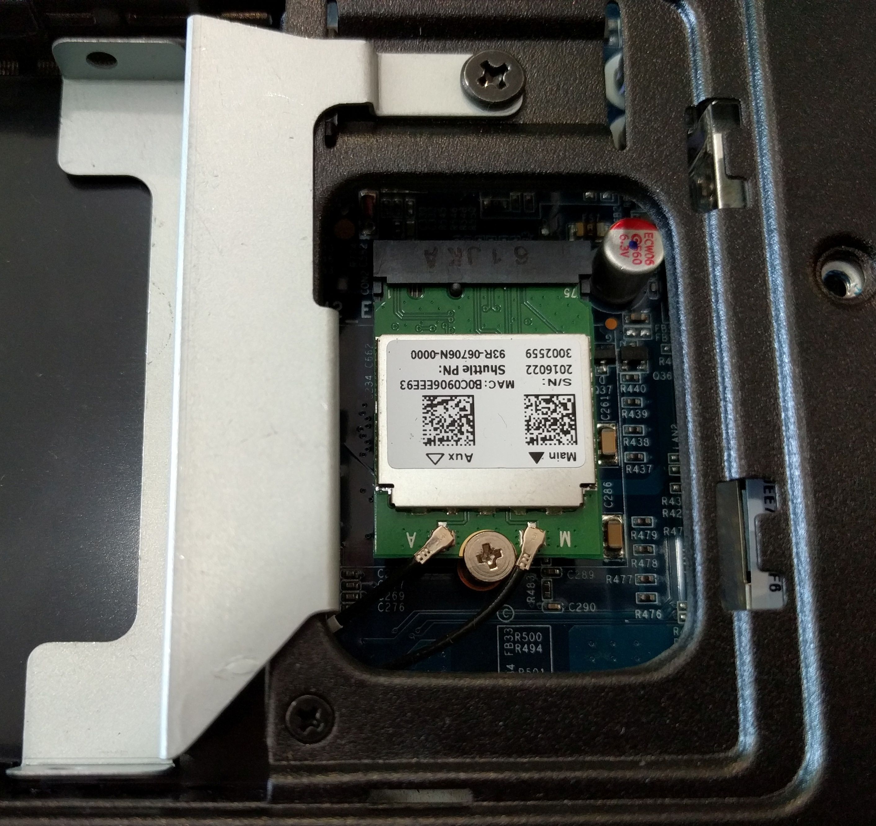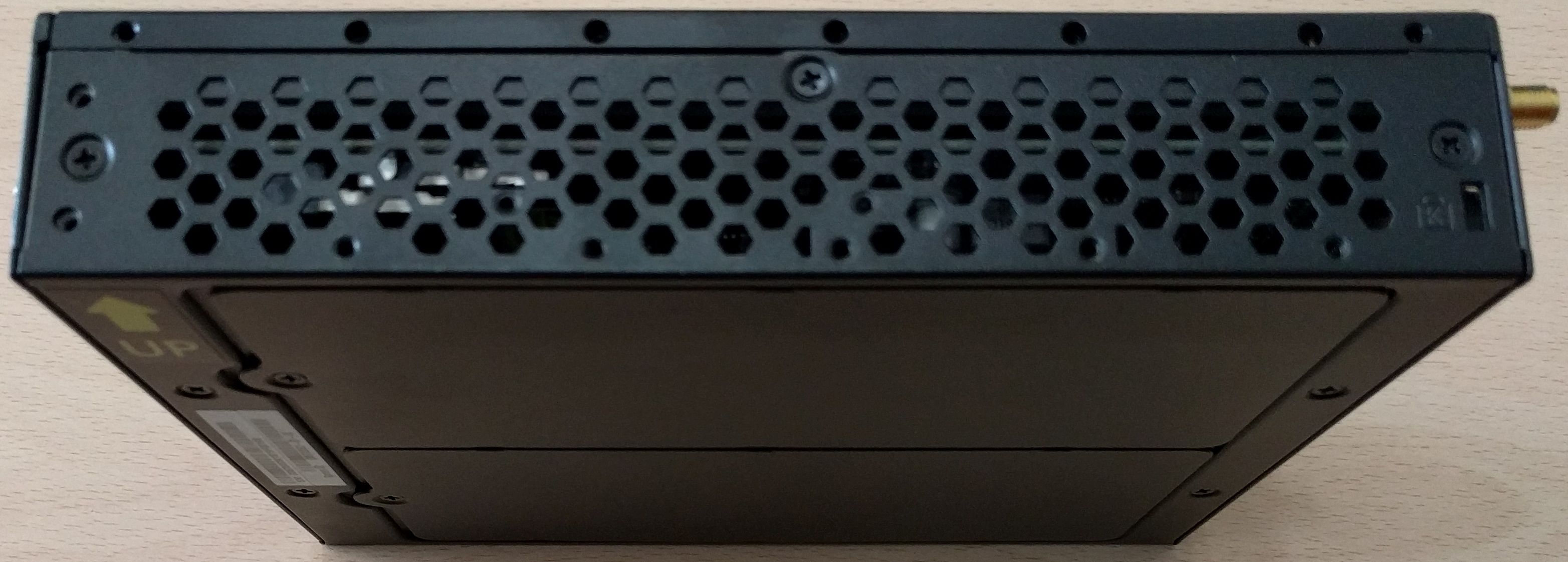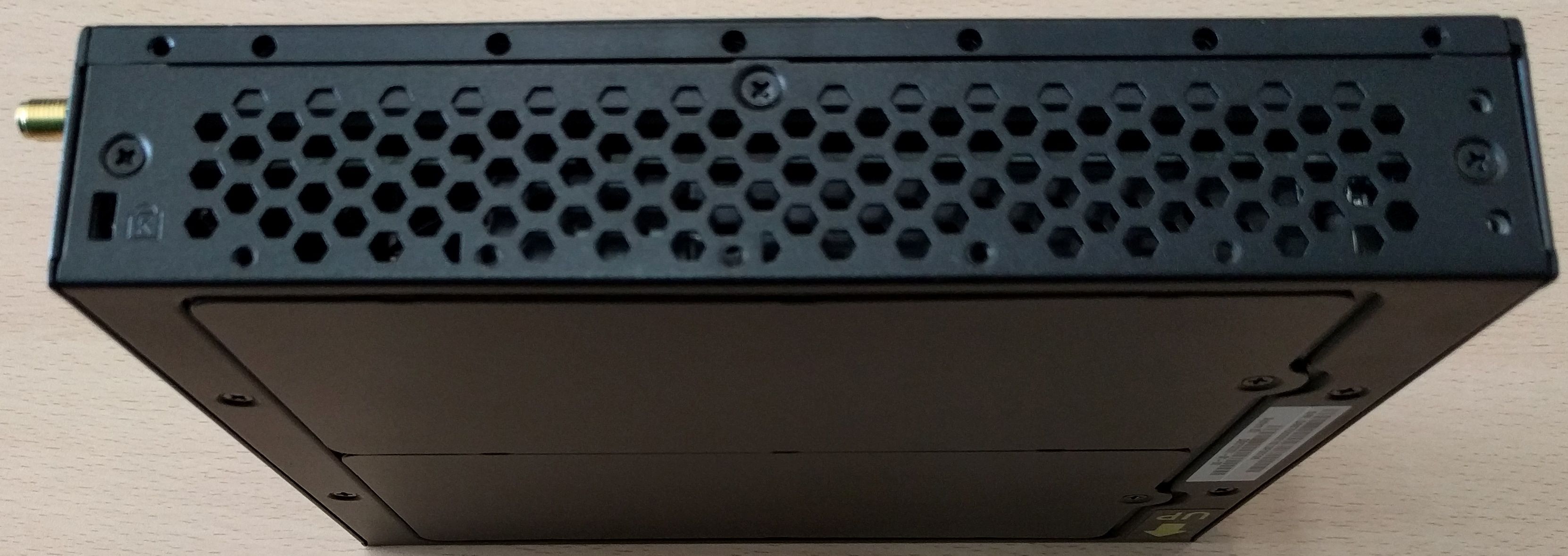 Con las dos tapas quitadas, vemos el espacio para la instalación de una unidad de almacenamiento, que puede ser SATA de 12.5mm, 9.5mm o 7 mm de grosor, aunque se aconseja poner un disco SSD (que ya son de 7mm) y funcionan infinitamente más rápidos que los discos mecánicos, así como que emiten mucha menos temperatura. Pero también se pueden instalar discos SSD M.2. También vemos los dos zócalos de memoria que soporta módulos de 16GB DDR3L a 1.35V, haciendo un máximo de 32GB. Y después ya vemos el módulo Wireless ya preinstalado de fábrica.