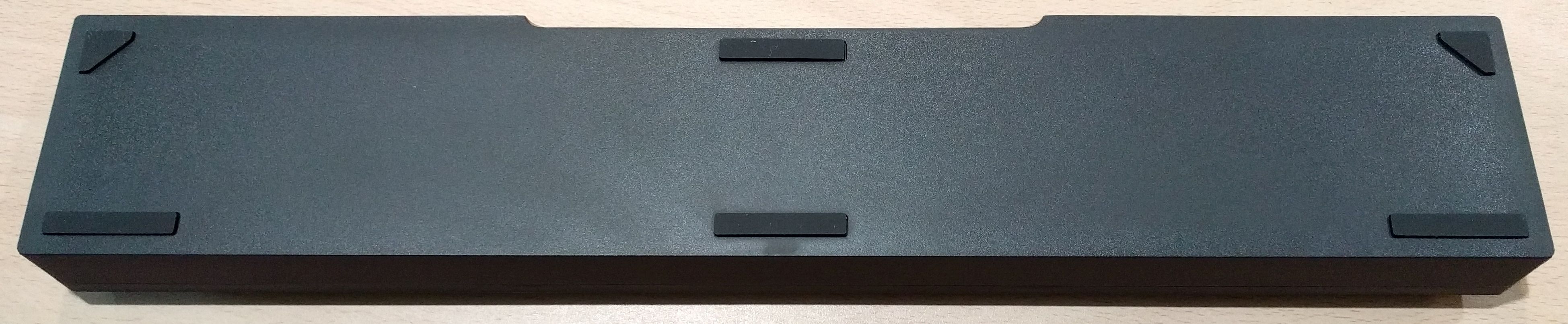 En la parte principal de la caja nos muestra una imagen del teclado encendido con sus colores variantes, y también con un corte en la zona de sus teclas de direcciones, donde últimamente ha hecho lo mismo en otros de sus teclados. Lo que permite a los usuarios probar las teclas para comprobar su buena calidad y tacto.