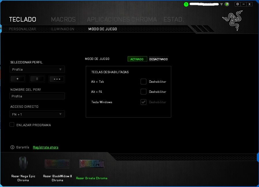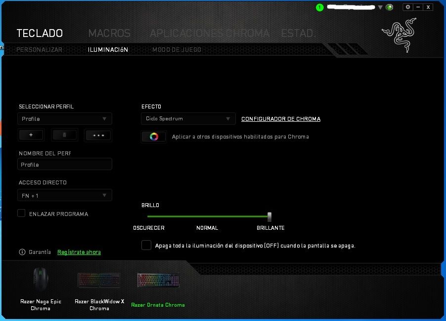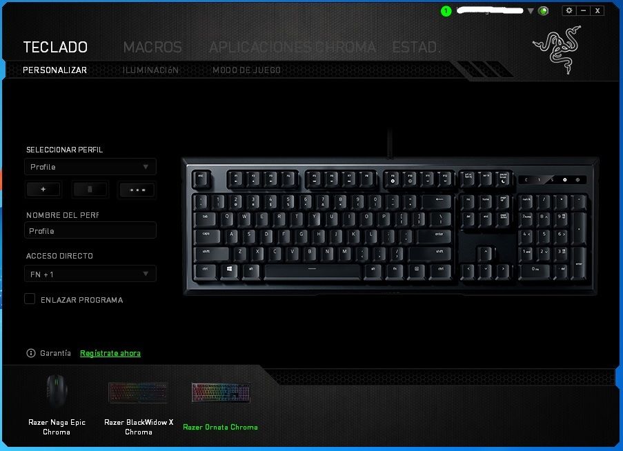 Cuando conectamos el Razar Ornata Chroma, automáticamente lo detecta en el equipo y en el software, donde en su interfaz nos muestra todos los dispositivos Razer que tenemos asociados a nuestro ordenador.