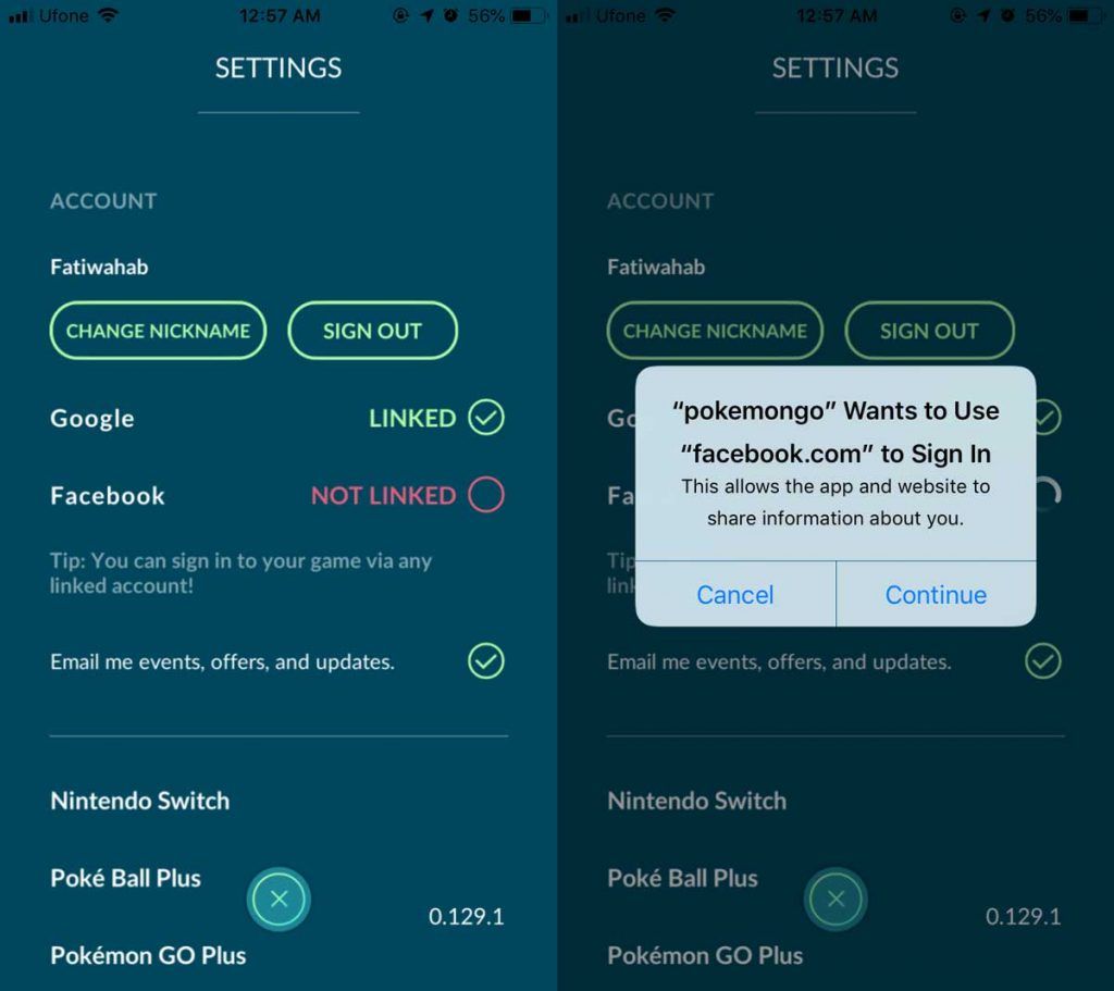 Conecta Facebook a Pokémon Go