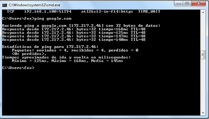 Este mando se utiliza para detectar si hay o no conexión de internet. O si está fallando debido a que no se reciben o se envían paquetes de red. Solo debes teclear “ping” más la dirección IP o el dominio de internet asociado para que se haga una prueba. Esta prueba consiste en que tu pc va a enviar paquetes y los va a recibir. Si no los recibe, entonces existen problemas de comunicación.