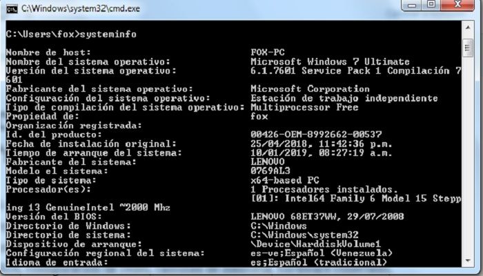 Si quieres ver en detalle todo lo relacionado a tu PC, entonces debes teclear “systeminfo” en la consola de Windows. Esta lista será de la configuración total que tienes en tu ordenador. Además te va a mostrar información de la BIOS, configuración de redes, cantidad de memoria, hardware conectado, entre otros.