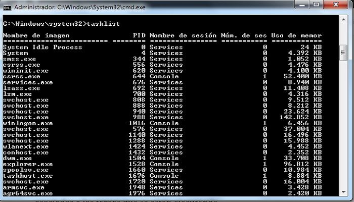 Mira la lista de los procesos que se ejecutan en tu ordenador con “tasklist”