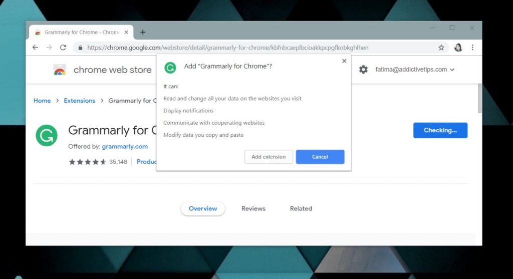 La extensión te mostrará la lista de permisos que la extensión necesita para funcionar y tú quieres prestar atención a esta lista. Asegúrate de que la extensión no está pidiendo permisos que no necesita. Una vez que le hayas dado a la extensión los permisos que necesita, se instalará en Chrome.