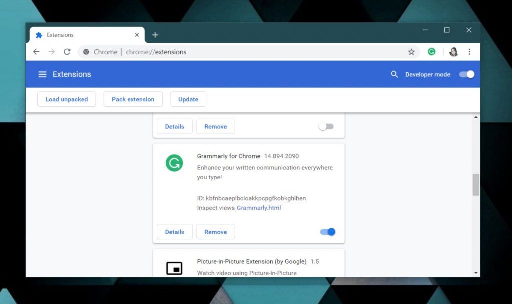 Descarga la extensión Chrome y vuelve a la página Extensiones en Chrome. Haz clic en el botón Load Unpacked y selecciona la extensión que descargaste y se instalará en Chrome. Una vez más, se instalará por perfil.