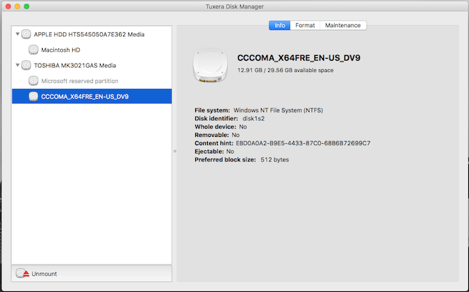 Tuxera NTFS para Mac es otro programa. Está construido sobre el estándar abierto que usamos anteriormente, NTFS-3G. La licencia es un poco más sencilla. Ya que pagas 25 $ para usarla en todos tus Macs.