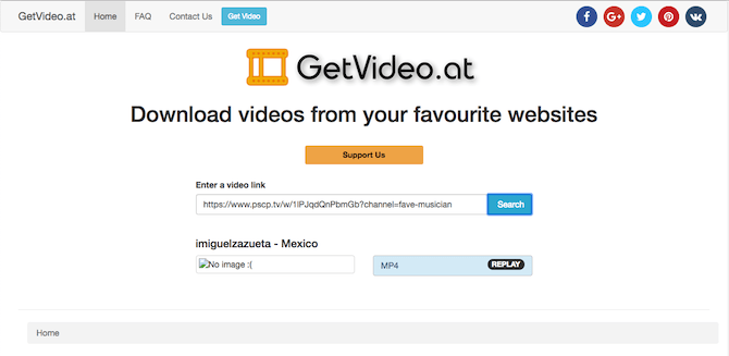 A continuación, en los equipos, puedes visitar GetVideo y simplemente pegar la dirección del vídeo en el campo de búsqueda donde dice Introducir un enlace de vídeo. Presiona el botón azul Buscar y, si tienes éxito. La aplicación mostrará la longitud del clip, tu nombre y un enlace de descarga para transferir tu archivo MP4. Sólo tienes que hacer clic en ese botón y ya está todo listo.