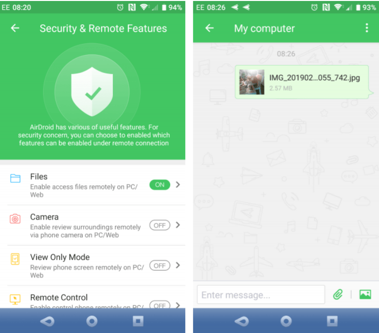 Hay varias herramientas disponibles en AirDroid. Para transferir archivos a un ordenador Asegúrate de que la opción Archivos esté activada.