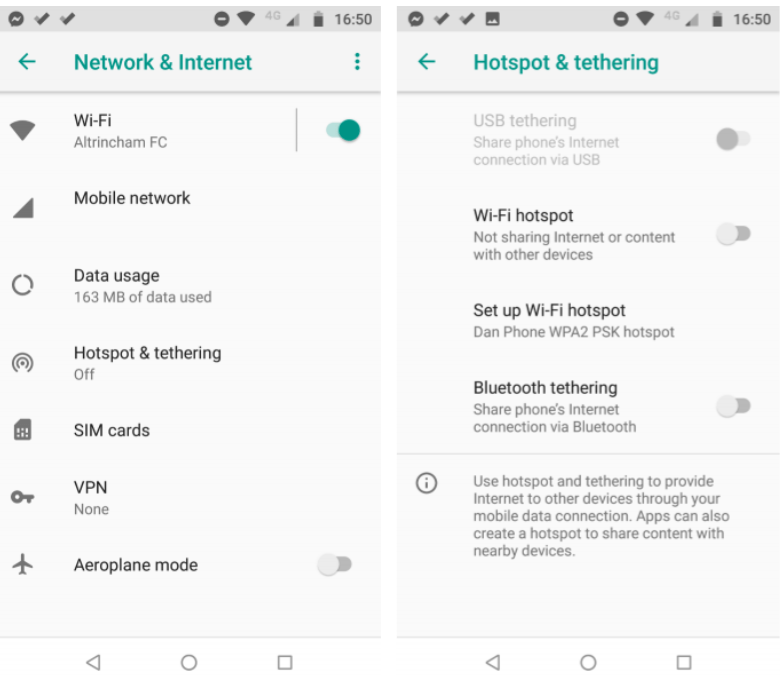 Si tienes un dispositivo Android, puedes habilitar la función de conexión dirigiéndote a Ajustes > Red e Internet > Hotspot y conexión y, a continuación, desliza la palanca junto a Wi-Fi hotspot en la posición On.