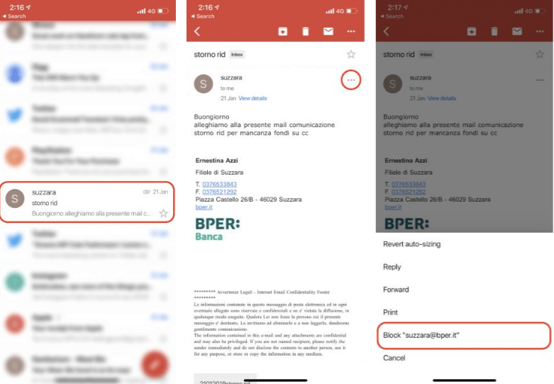 En este caso, la mejor manera de bloquear un remitente de tu teléfono, es descargando la aplicación gratuita de Gmail. Esto lo podrás hacer desde la App Store. Una vez que la descargues inicia sesión, cuando lo hagas, solo debes encontrar el remitente que deseas bloquear. Debes pulsar sobre el mensaje o remitente.