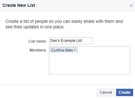 Para hacer una nueva lita, debes hacer clic en “Crear lista” en la parte superior de la página. Ahora, debes asignar un nombre a dicha lista e ingresar algunos de los nombres de tus amigos en el cuadro “Miembros”. Cuando estés listo, debes presionar en “Crear.
