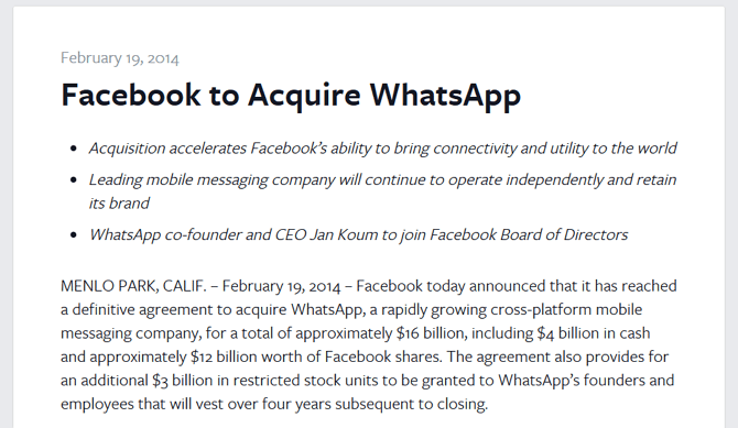 Facebook ha sido objeto de muchas críticas en los últimos años. Una de esas críticas es el monopolio efectivo del mercado de Facebook y las acciones anticompetitivas. Los reguladores intentan minimizar el comportamiento anticompetitivo evaluando cualquier intento de adquisición.