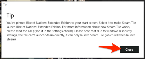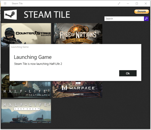 12.- Al hacer clic a la barra, se abrirá la aplicación Steam Tile primero antes de ejecutar el videojuego. Ciertamente una lástima que no se ejecute de inmediato, pero es un pequeño precio a pagar por una función tan llamativa como la que ofrece esta aplicación.