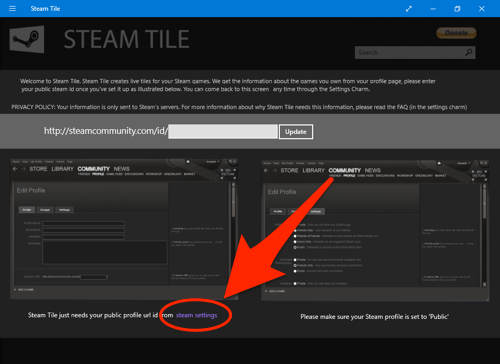 6.- Regresa a la aplicación Steam Tile y pega la información en tu portapapeles (Hablamos de tu link personalizado de Steam) en el cuadro de texto que se muestra en la parte superior. Verifica que tu link es el correcto y has clic en “Upgrade”.