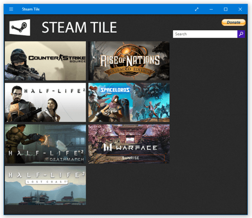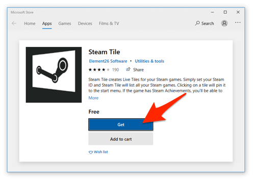 1.- Descarga la aplicación Steam Tile desde la Windows Store. No te preocupes ya que no abarca demasiado espacio en tu disco duro, y realmente no notarás ninguna repercusión en el rendimiento de tu equipo. En un parpadeo deberás tener la aplicación ya instalada.