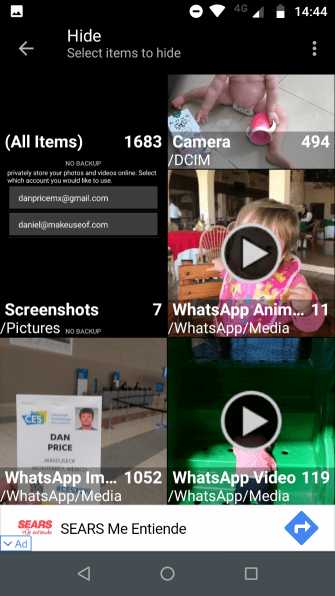 Entre algunas de sus funciones, encontramos que permite la creación de señuelos para confundir a cualquier curioso que intente fisgonear tus fotos o videos, así como soporte de tus contenidos en la memoria SD.